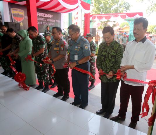 HUMAS PEMKO BATAM - Pengguntingan pita dan penandatanganan prasasti sebagai tanda diresmikannya kantor baru Koramil 01/Batam, Jumat (23/8) siang. Pengguntingan pita dilakukan Pangdam I/BB Mayjen TNI MS Fadhilah bersama-sama dengan Walikota Batam, Muhammad Rudi, Kapolda Kepri, Andap Budhi Revianto, Danlanal Kolonel Laut Alan Dahlan, Dandim 0316/Batam, Romel Jangga Wardhana...