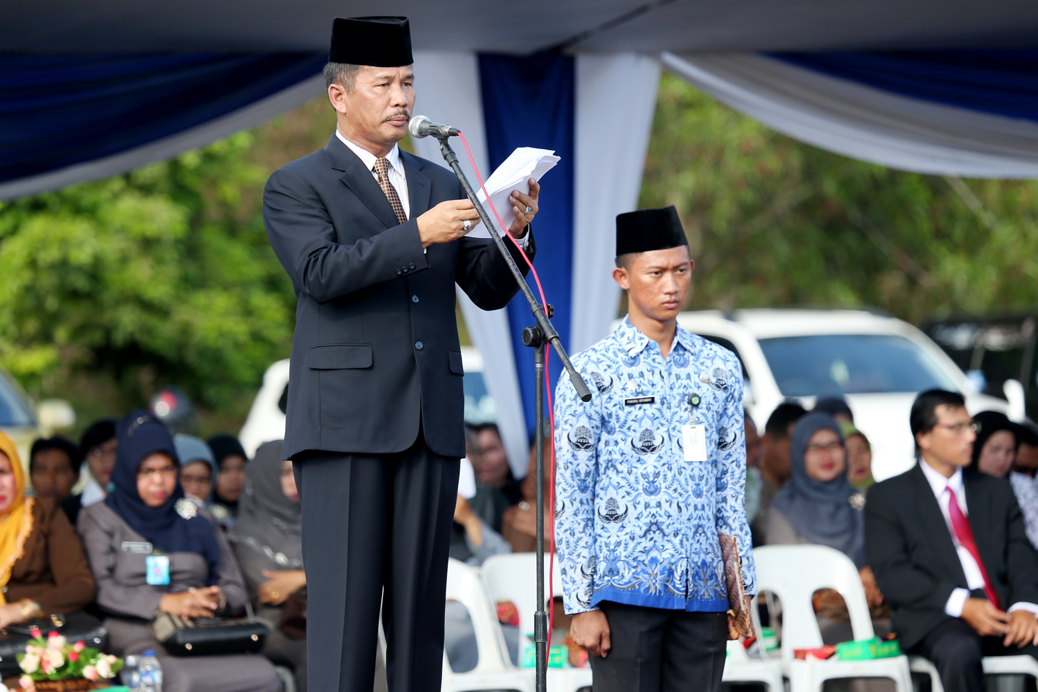 BATAM – Wakil Walikota Batam, Rudi bertindak sebagai inspektur dalam upacara Hari Pendidikan Nasional (Hardiknas), Jum’at (2/5) di Lapangan Tumenggung Abdul Jamal. Dalam kesempatan tersebut, Rudi menyampaikan pidato menteri Pendidikan, Mohammad Nuh.