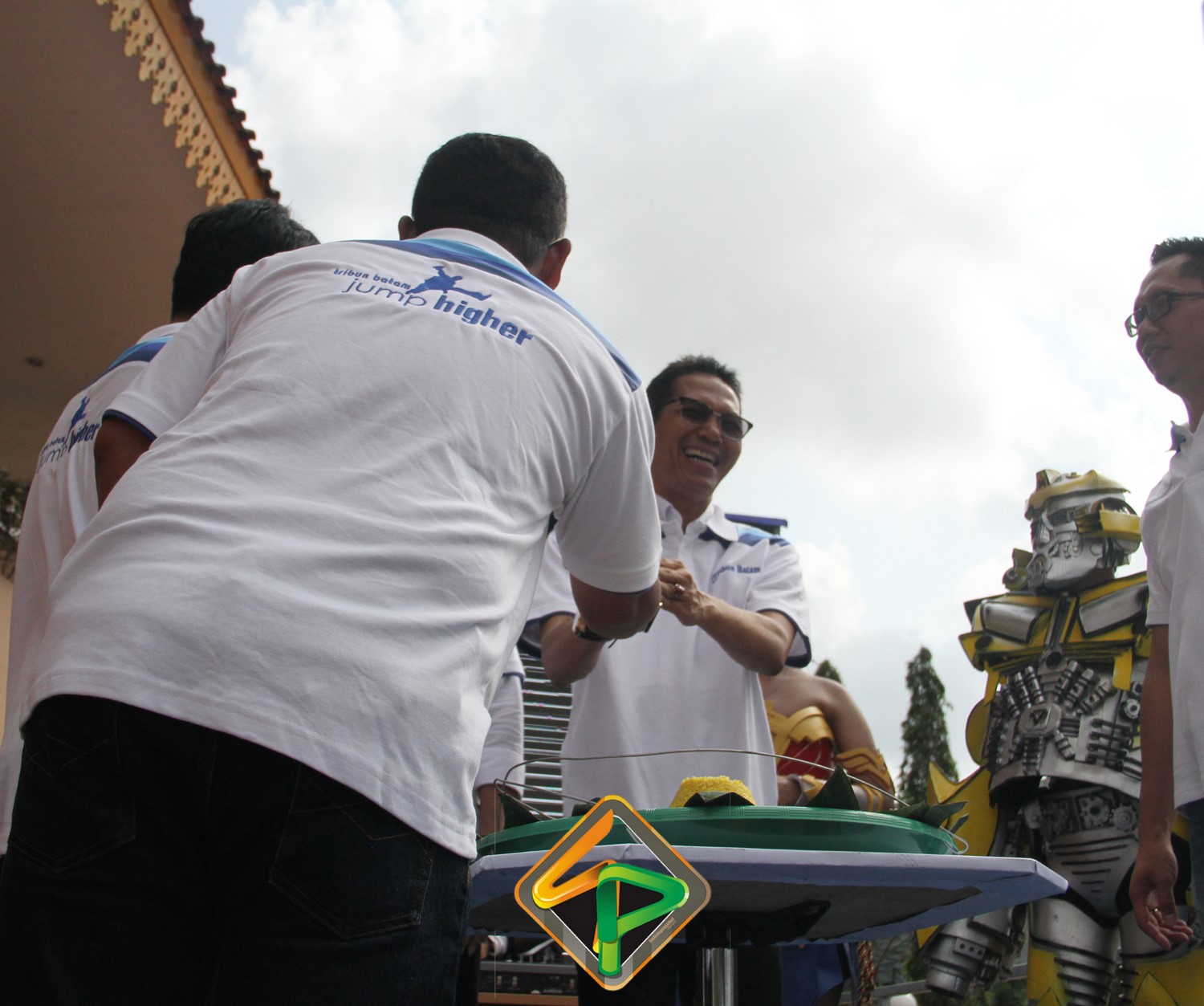 HUMAS PROTOKOL BATAM – Perayaan Ultah Tribun Batam ditandai dengan pemotongan tumpeng di atas truck di halaman Kantor Walikota, Jumat (15/9) oleh Wali Kota (Wako) Batam, Muhammad Rudi.