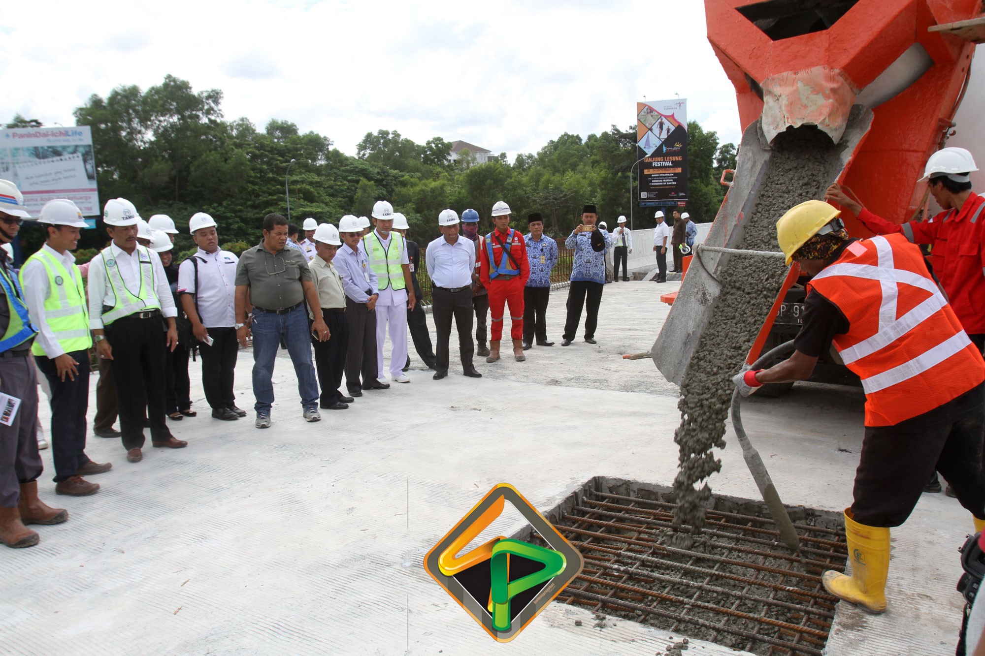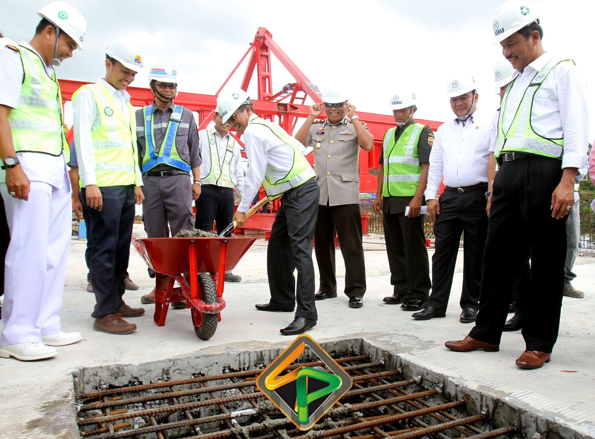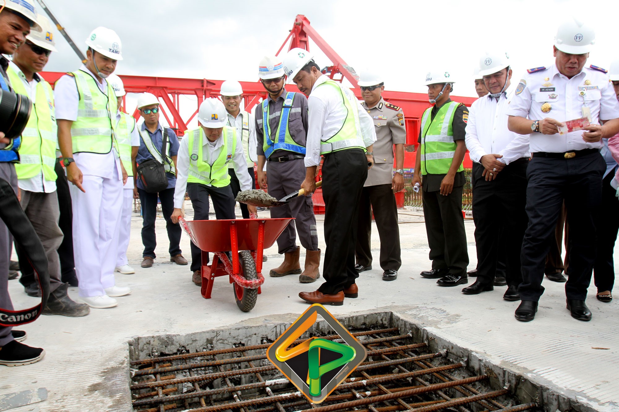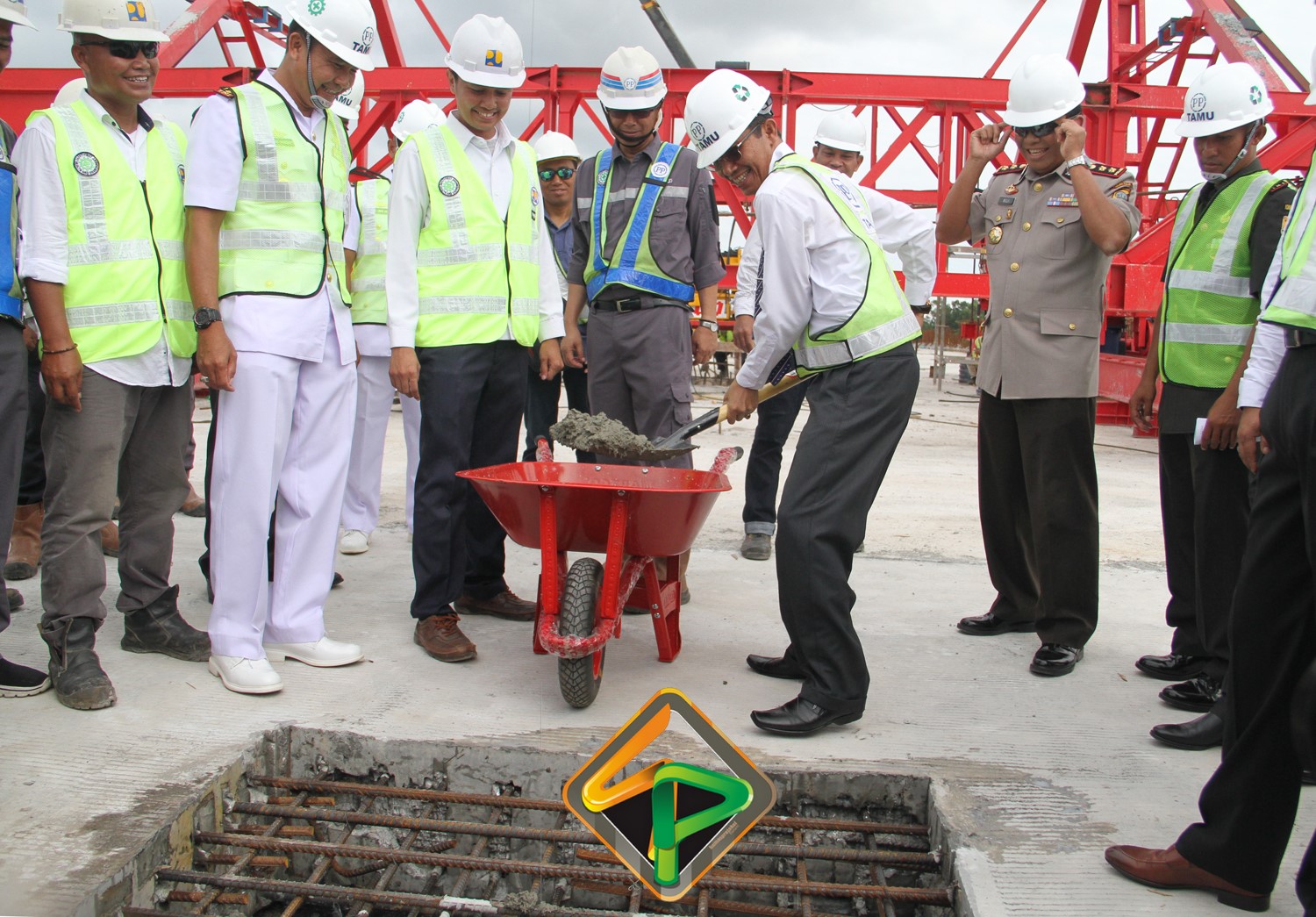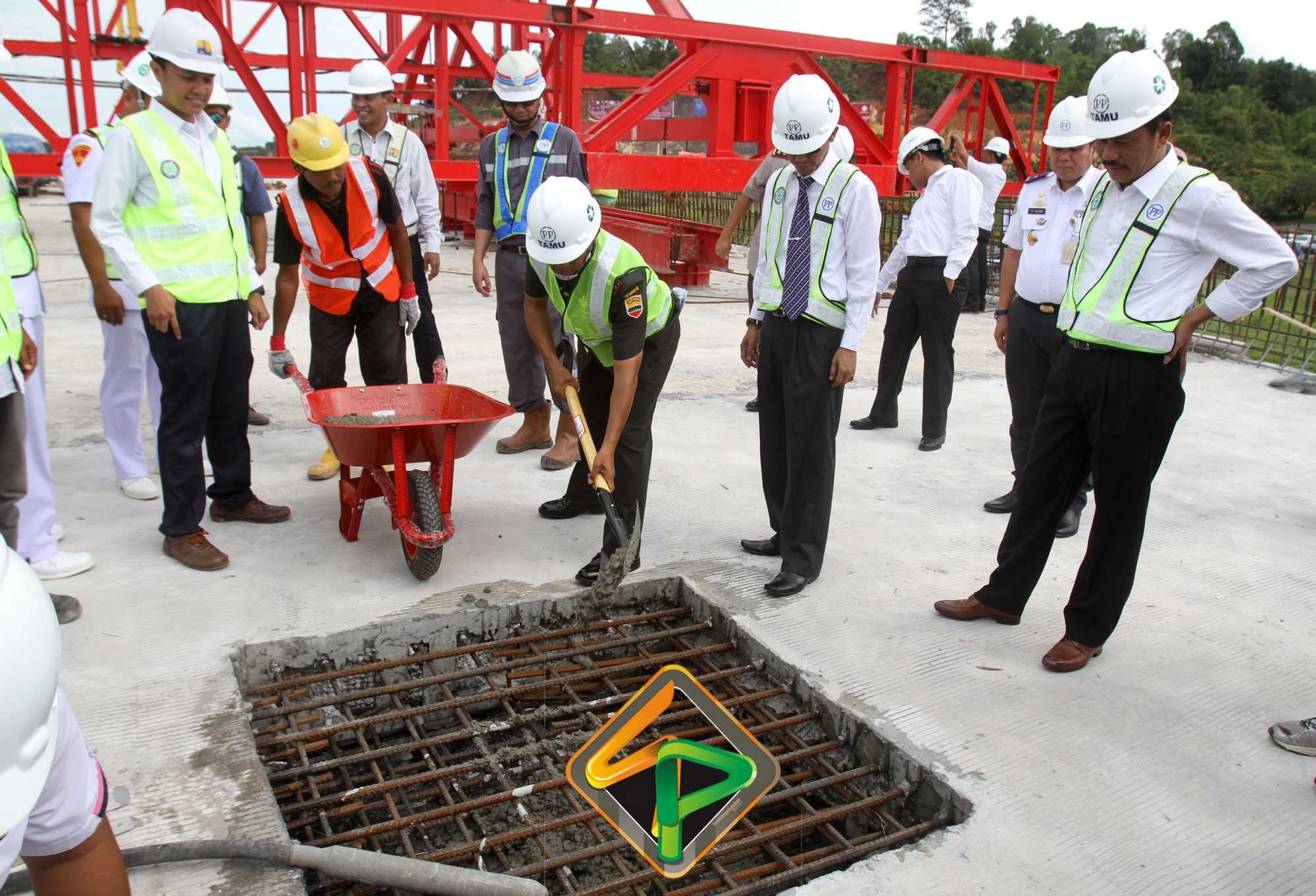HUMAS PROTOKOL BATAM– Wali Kota (Wako) Batam, Muhammad Rudi bersama Forum Komunikasi Pimpinan Daerah (FKPD) melakukan pengecoran terakhir pembangunan Flyover Simpang Jam, Senin (18/9). Pembangunan Flyover Simpang Jam sudah mencapai 91,386 persen dan diperkirakan rampung pada akhir Desember mendatang. Sesuai permintaan dari Pemerintah Kota (Pemko) Batam, flover dilengkapi dengan taman pada bagian bawah dan juga lampu penerang jalan dan ornament melayu. Untuk nama Flyover itu sendiri Wako mengusulkan dengan nama Laluan Madani.