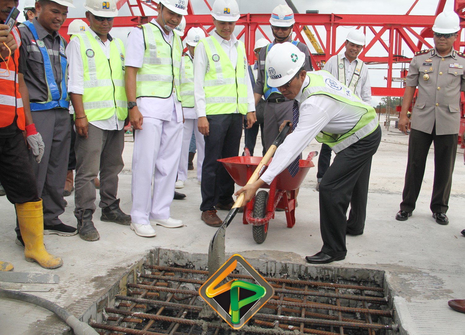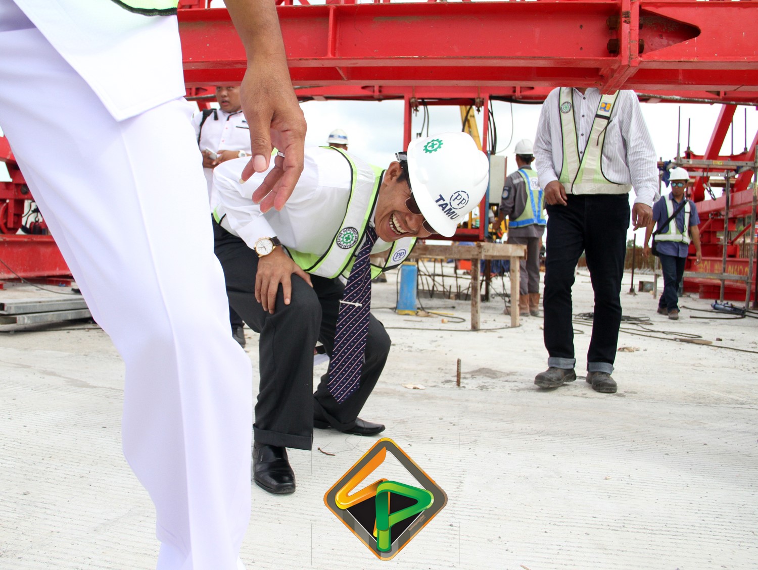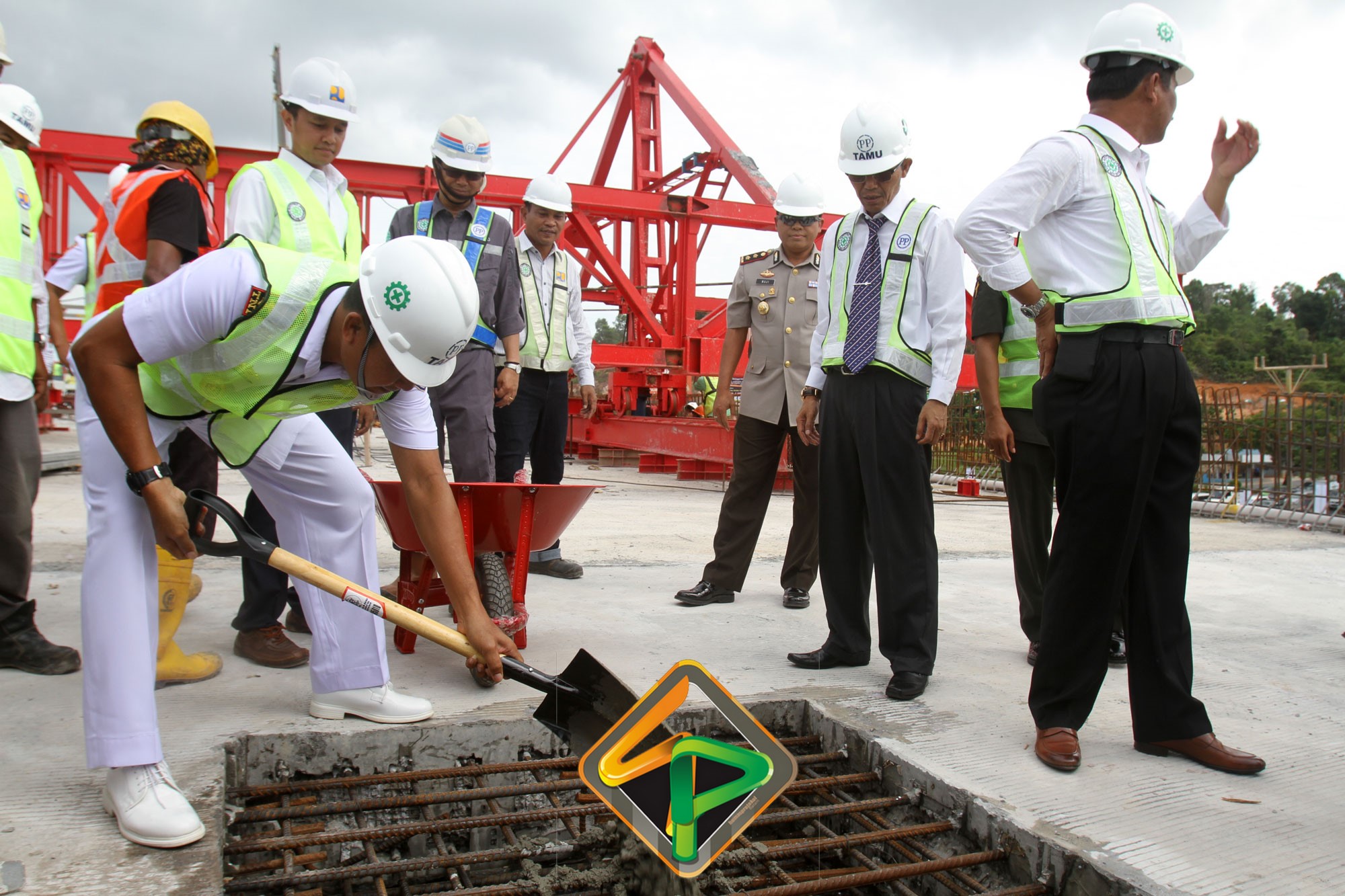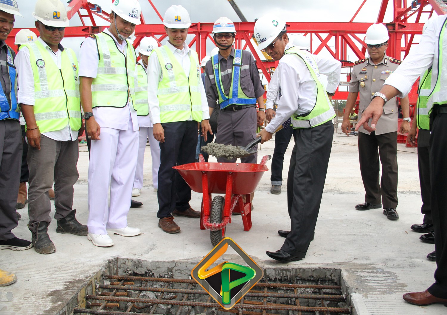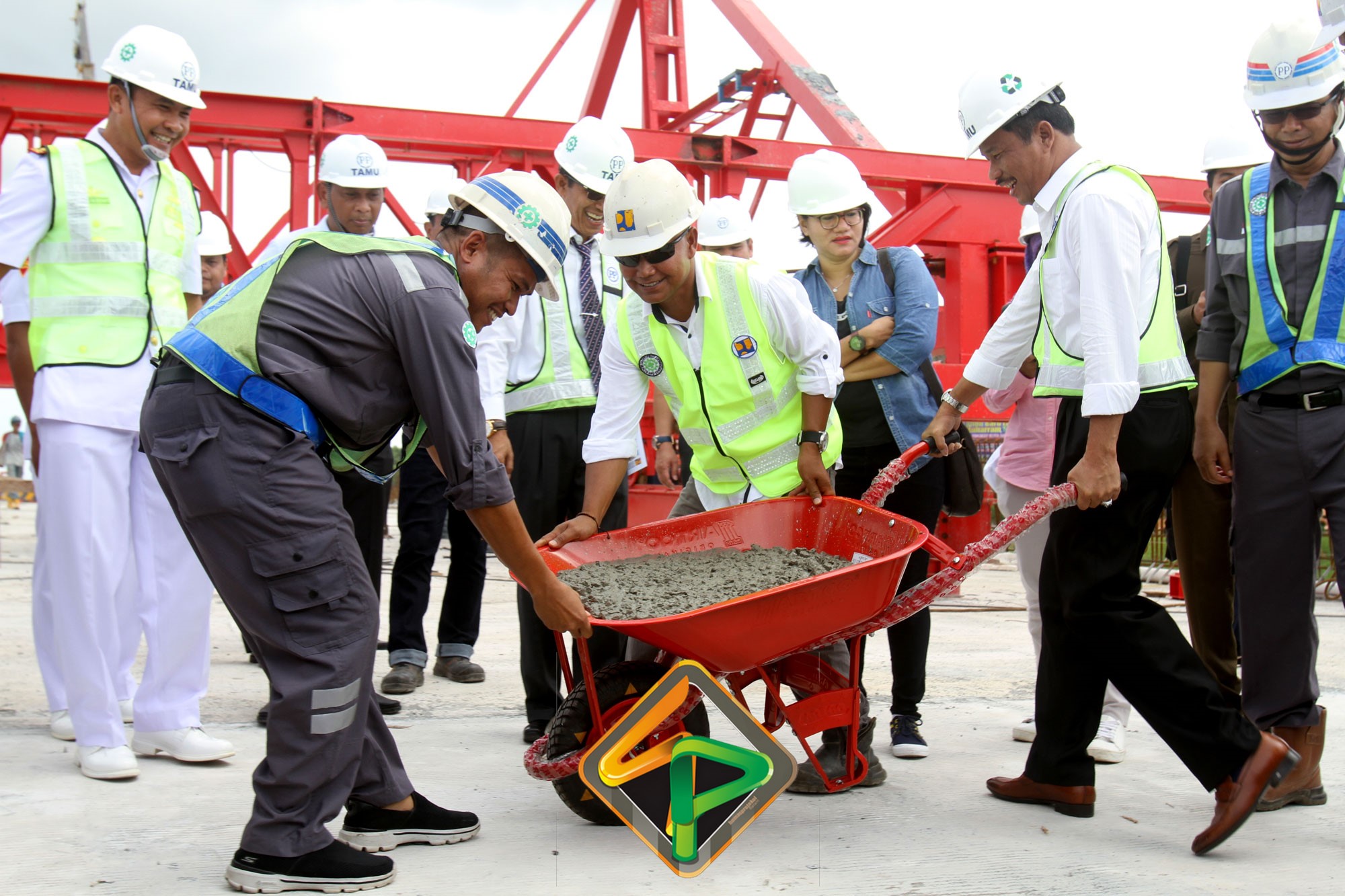 HUMAS PROTOKOL BATAM– Wali Kota (Wako) Batam, Muhammad Rudi bersama Forum Komunikasi Pimpinan Daerah (FKPD) melakukan pengecoran terakhir pembangunan Flyover Simpang Jam, Senin (18/9). Pembangunan Flyover Simpang Jam sudah mencapai 91,386 persen dan diperkirakan rampung pada akhir Desember mendatang. Sesuai permintaan dari Pemerintah Kota (Pemko) Batam, flover dilengkapi dengan taman pada bagian bawah dan juga lampu penerang jalan dan ornament melayu. Untuk nama Flyover itu sendiri Wako mengusulkan dengan nama Laluan Madani.
