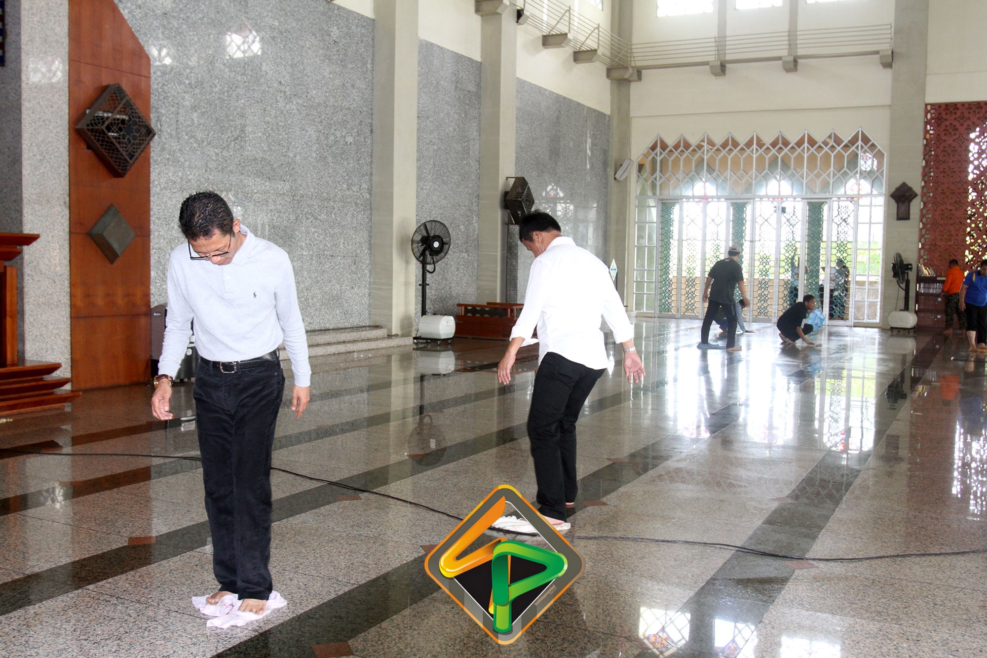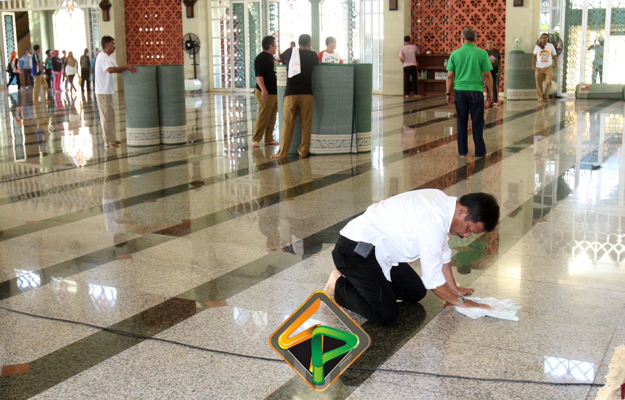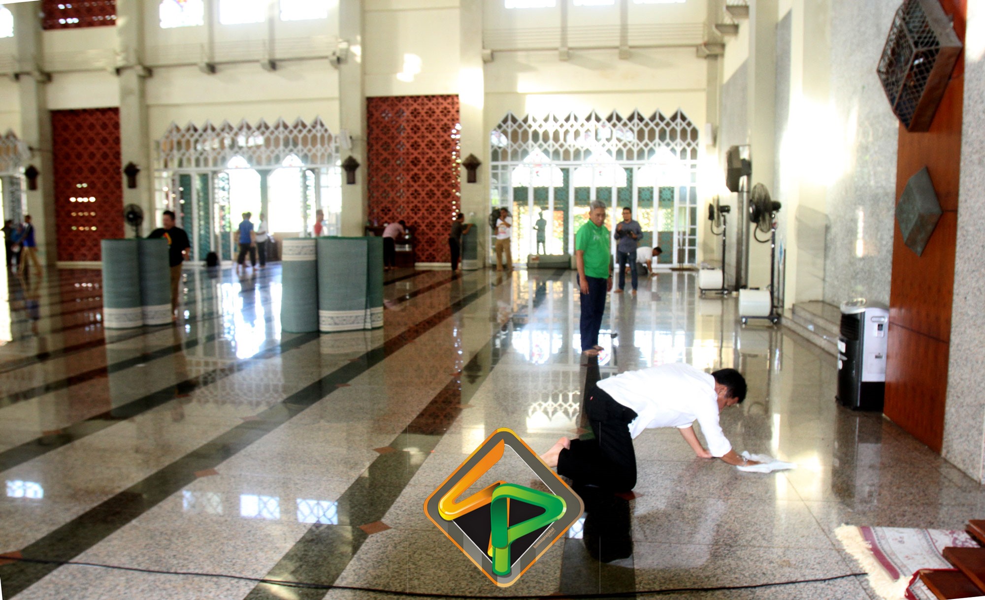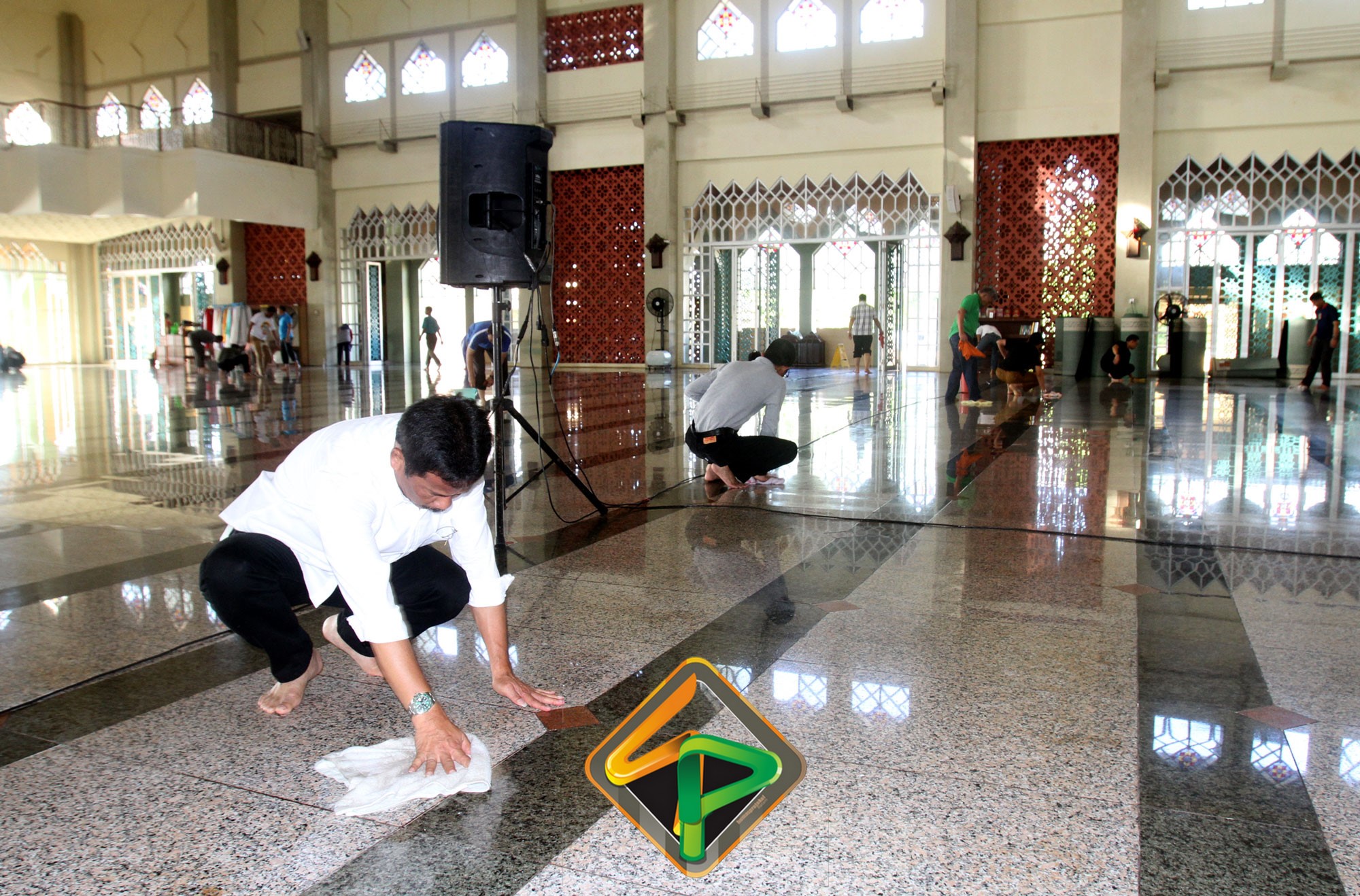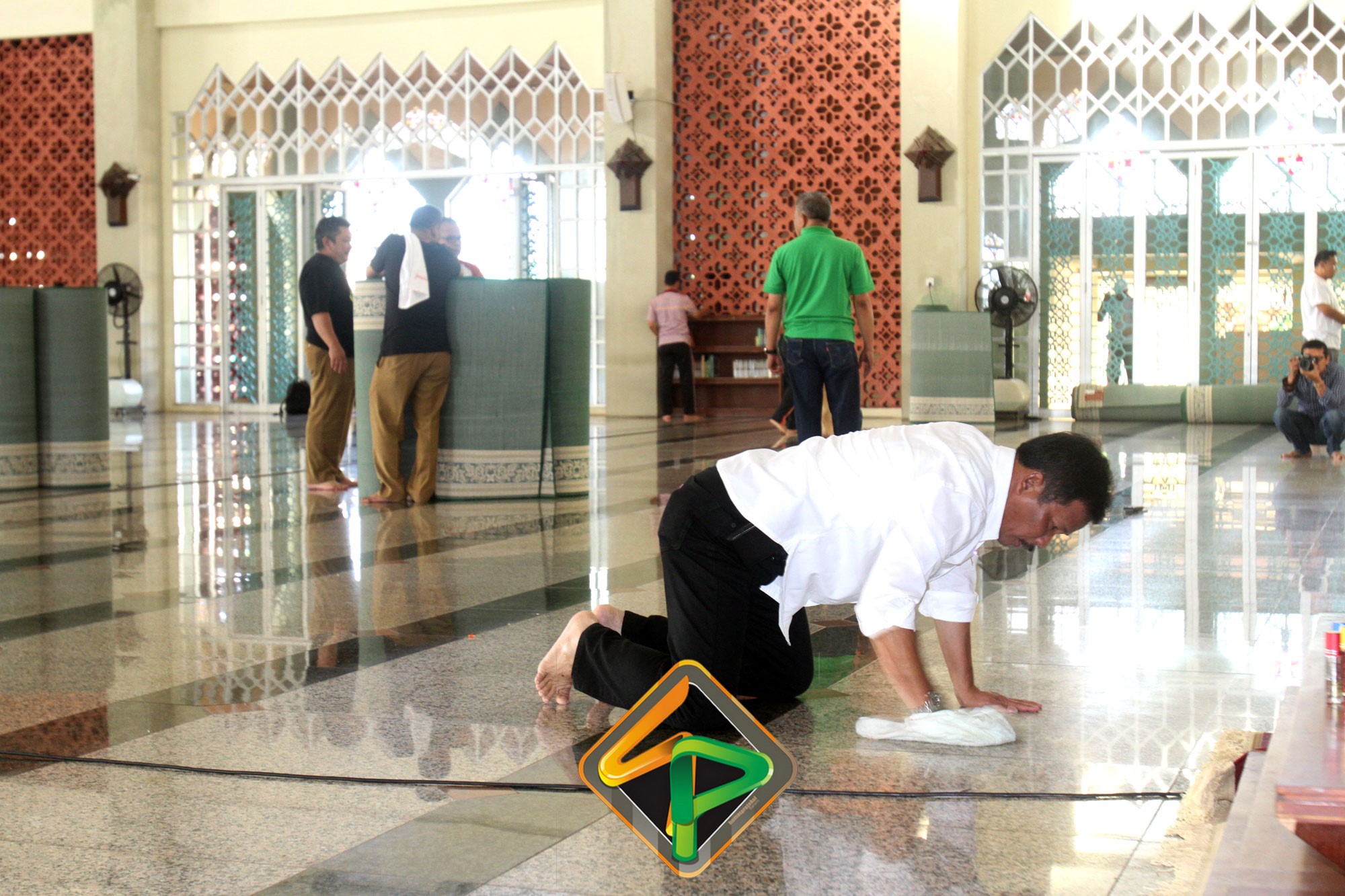 Tidak hanya membersihkan di bagian luar Masjid, pegawai juga tampak membersihkan bagian dalam masjid. Tidak mau ketinggalan Wako, Wawako, Sekda bersama pejabat teras Pemko Batam ikut ambil bagian mengepel lantai masjid. Dibersihkannya Masjid Agung ini karena sudah menjadi tanggungjawab dari Pemko Batam. Berkenaan belum adanya anggaran untuk pemeliharaan masjid, maka Pemko mengerahkan pegawai untuk membersihkannya.