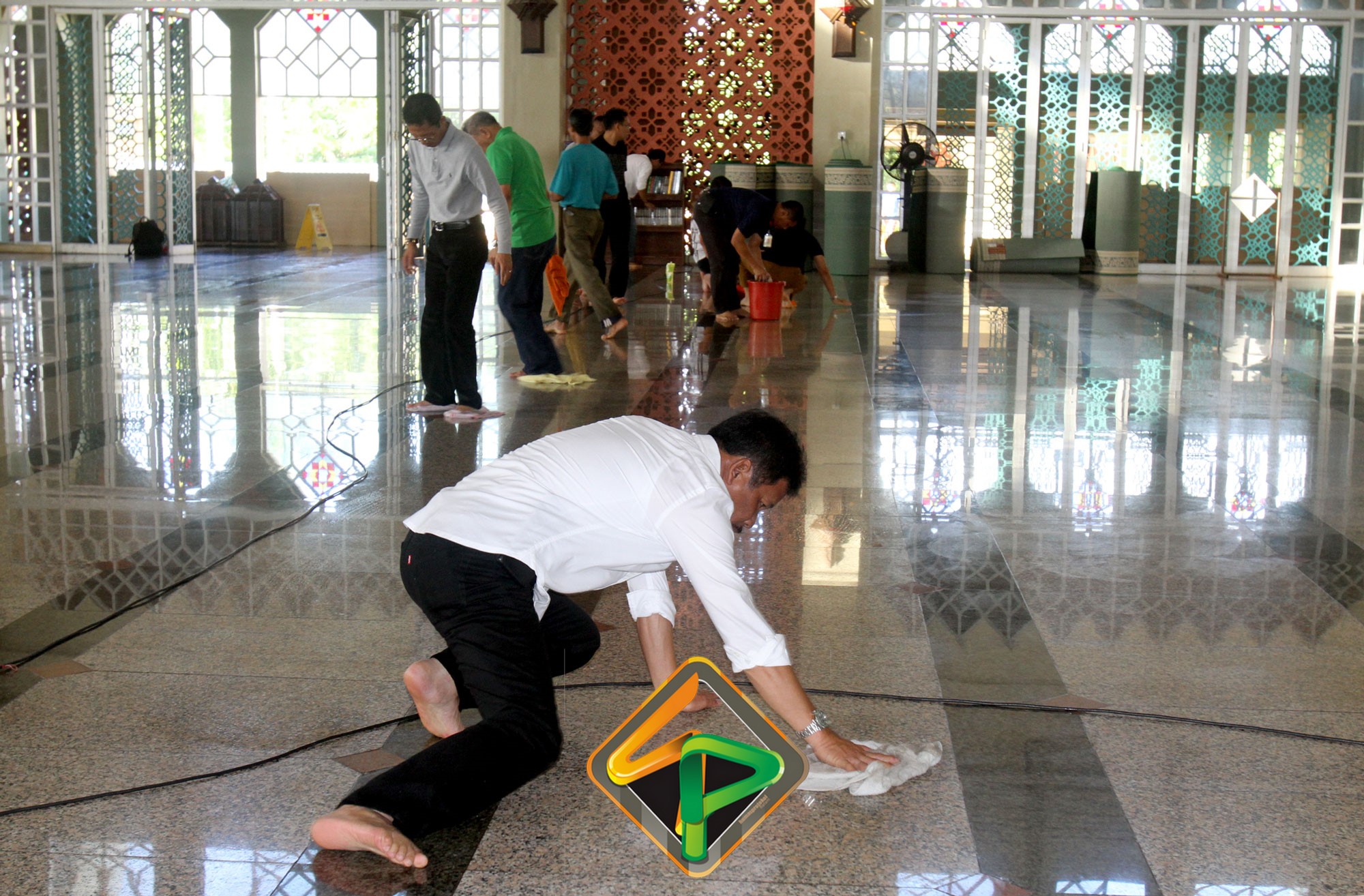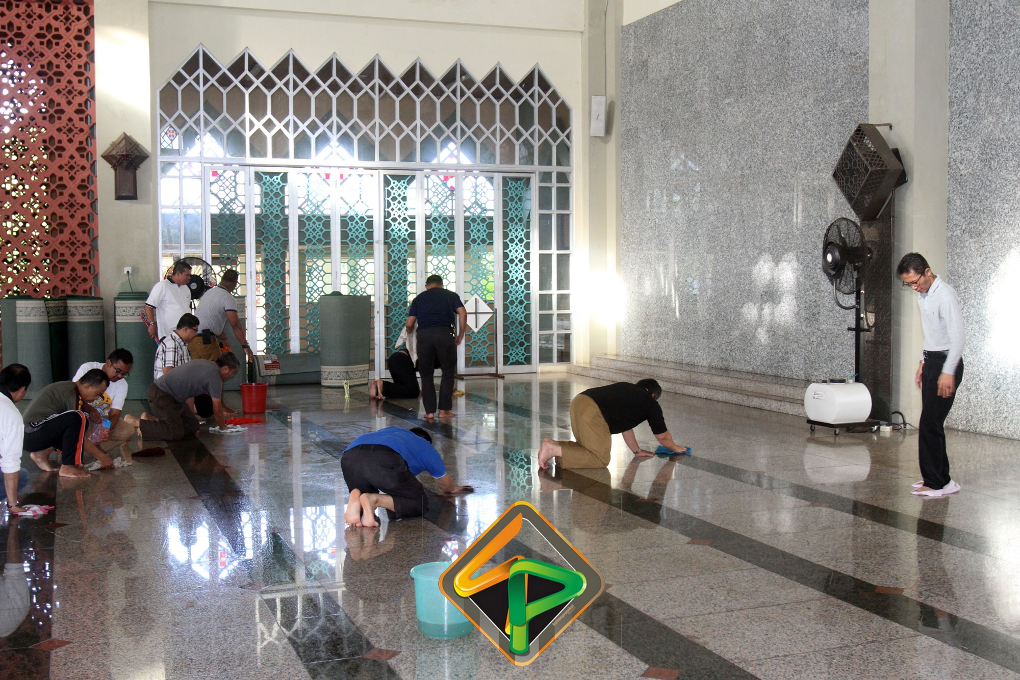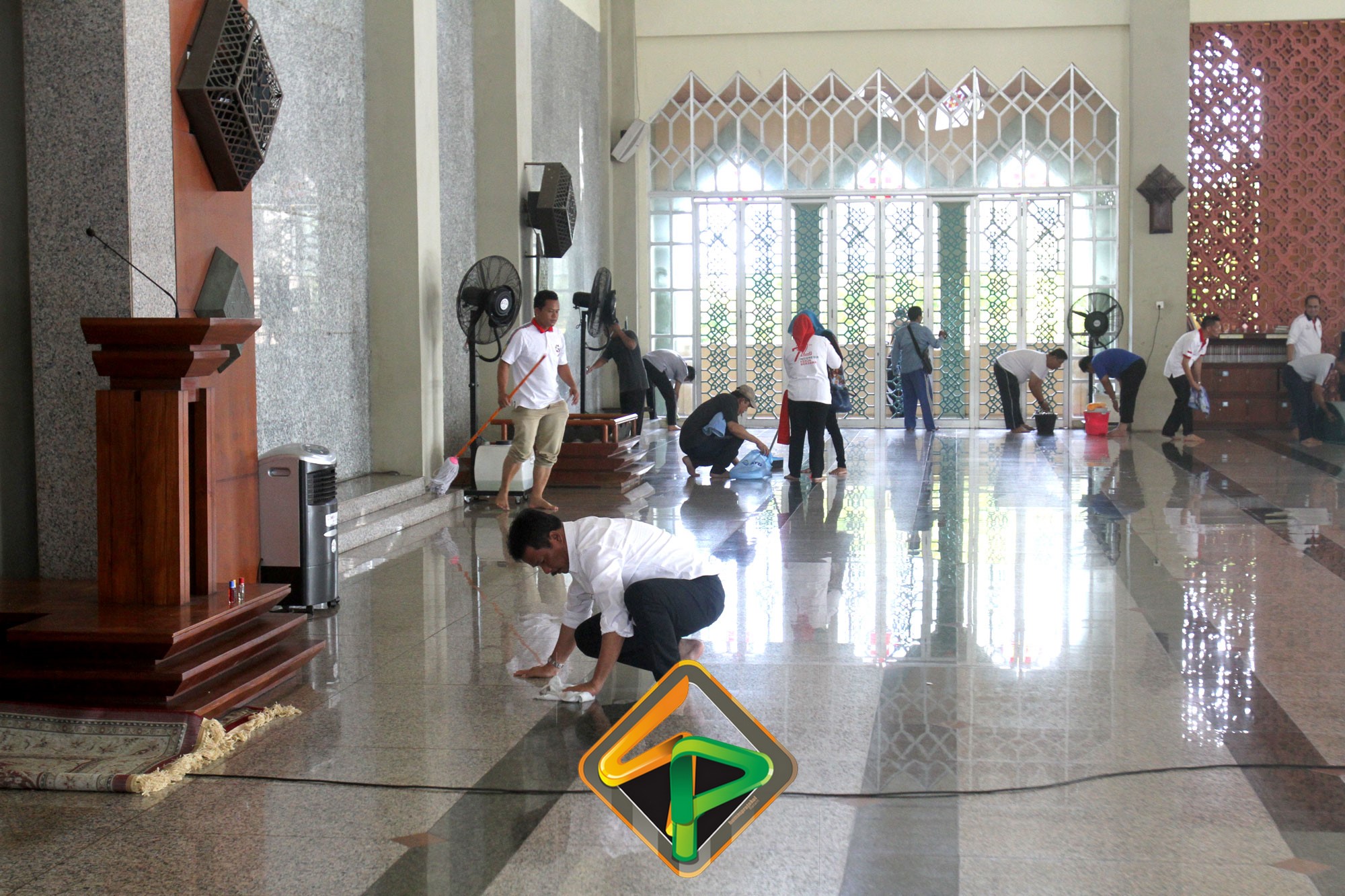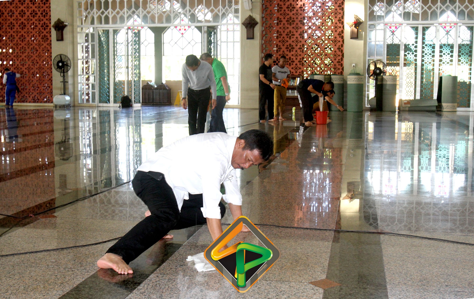 “Masjid ini sudah menjadi tanggungjawab kita. Saya lihat pegawai antusias dan ini kerja ikhlas dan lilahhitaallah. Bukan hanya bagian dalamnya saja yang kita bersihkan, bagian luarnya juga,” katanya semangat.