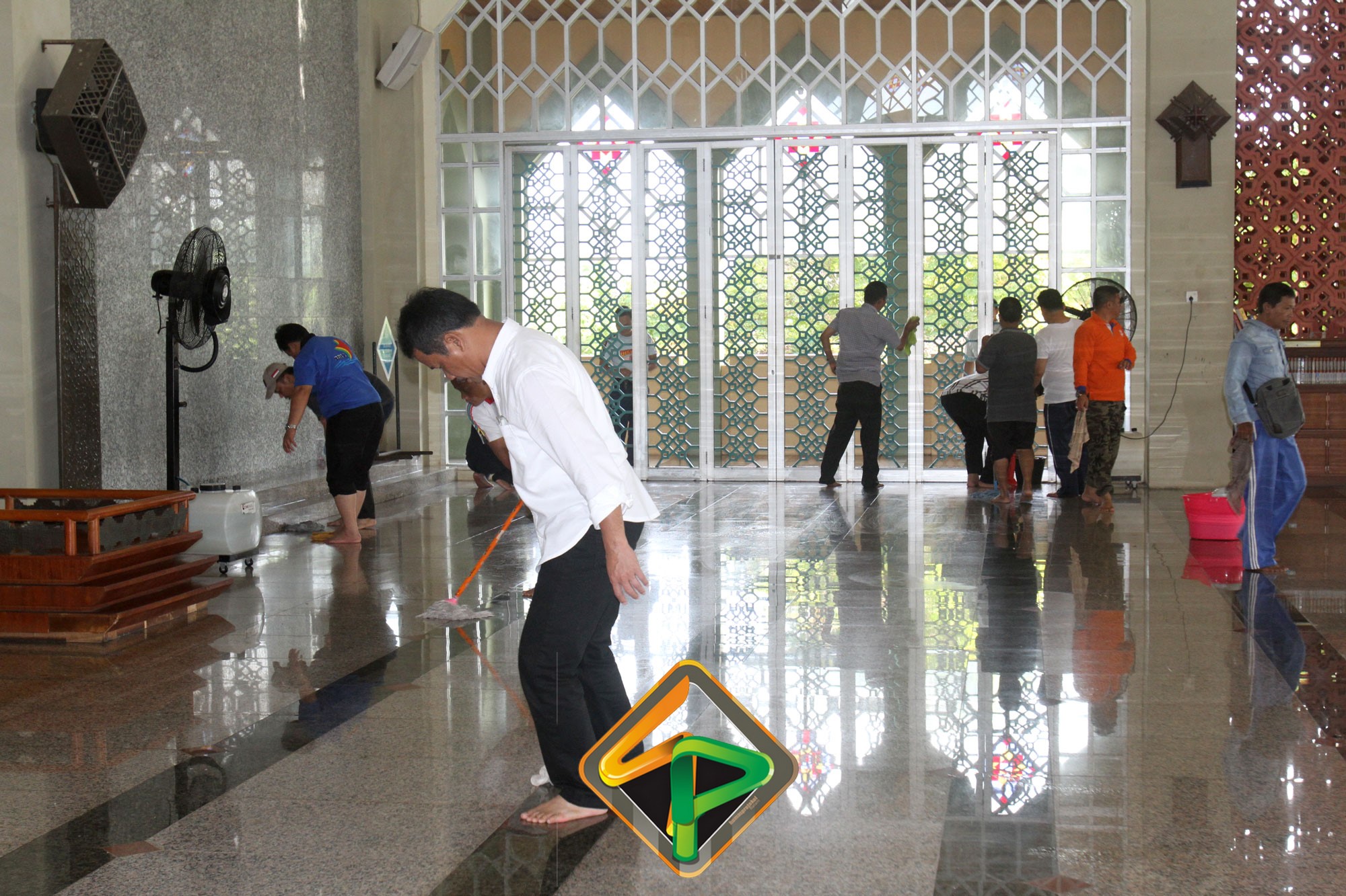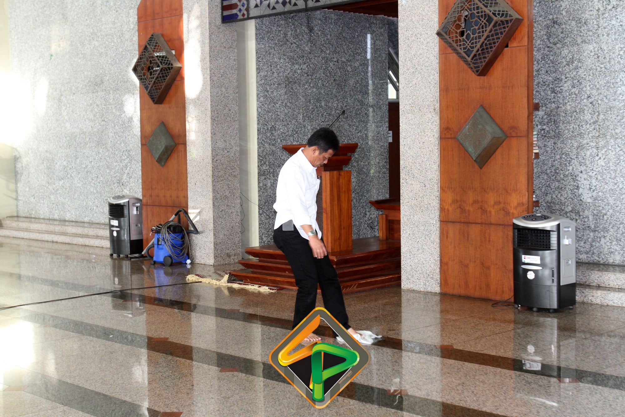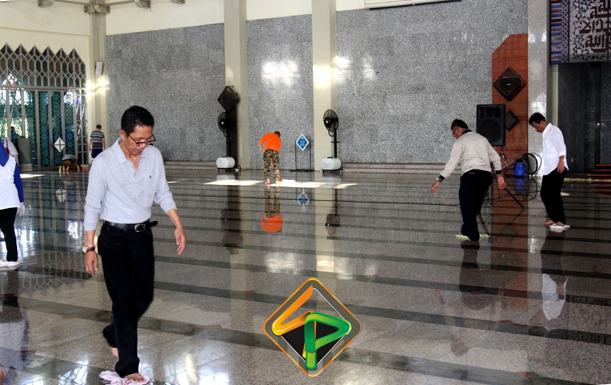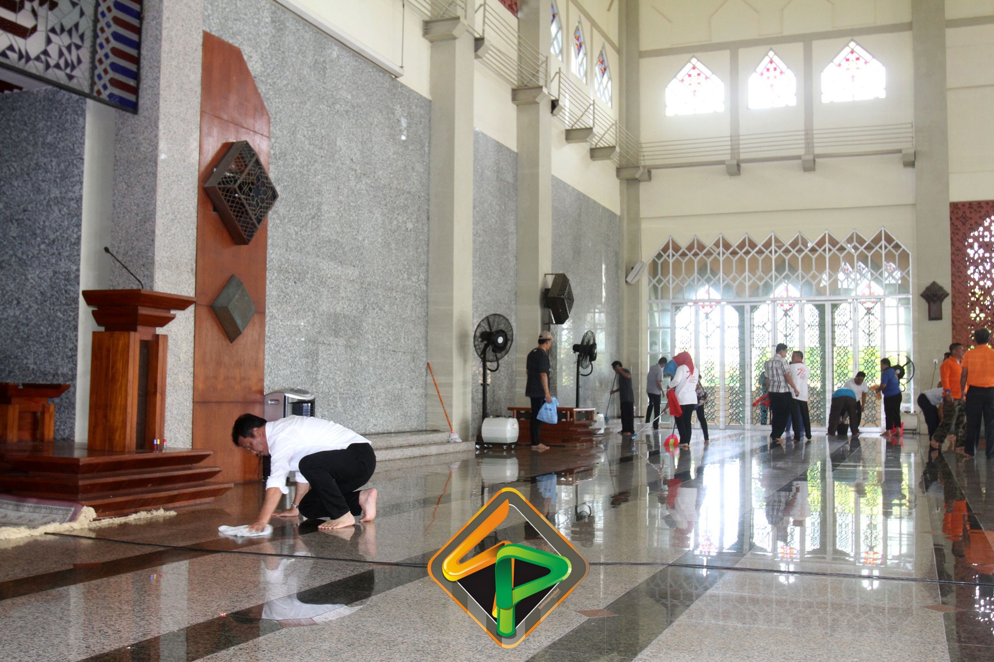 “Masjid ini sudah menjadi tanggungjawab kita. Saya lihat pegawai antusias dan ini kerja ikhlas dan lilahhitaallah. Bukan hanya bagian dalamnya saja yang kita bersihkan, bagian luarnya juga,” katanya semangat.