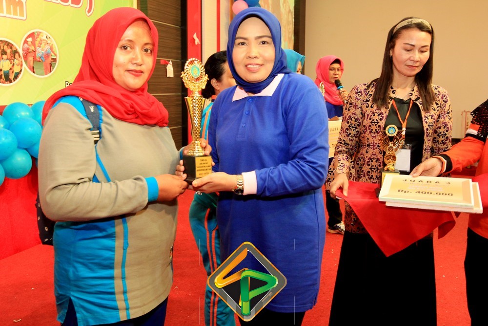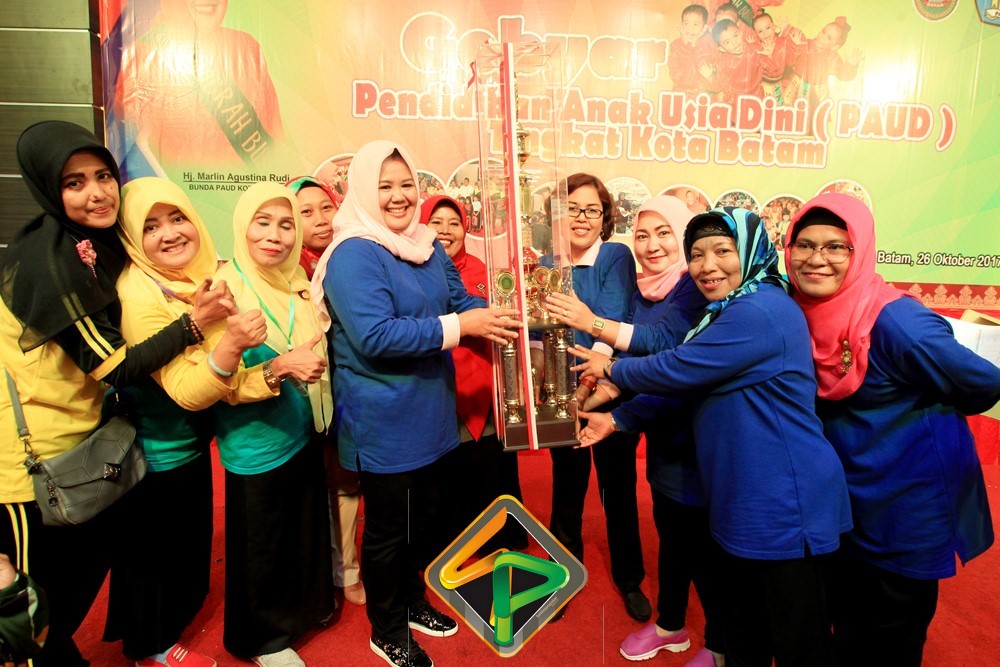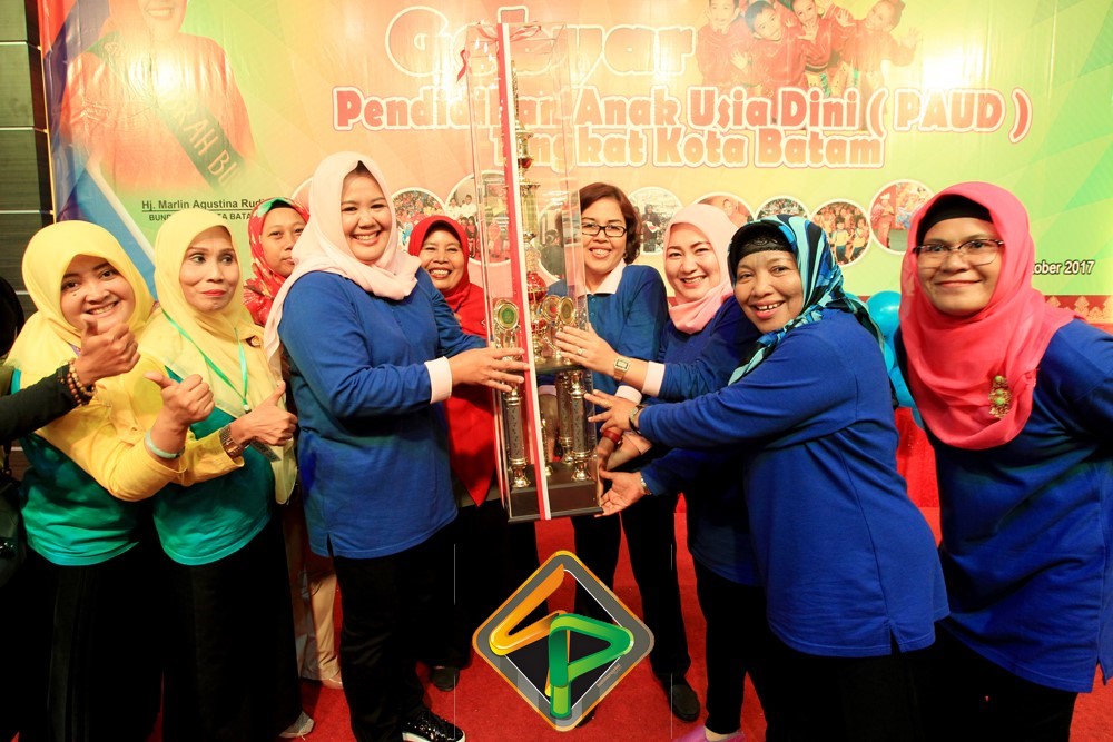 Piala bergilir diserahkan Bunda PAUD kota Batam kepada Bunda Paud kecamatan Kecamatan Sagulung yang tampil sebagai Juara Umum dalam lomba Pentas Kreasi Anak tersebut.