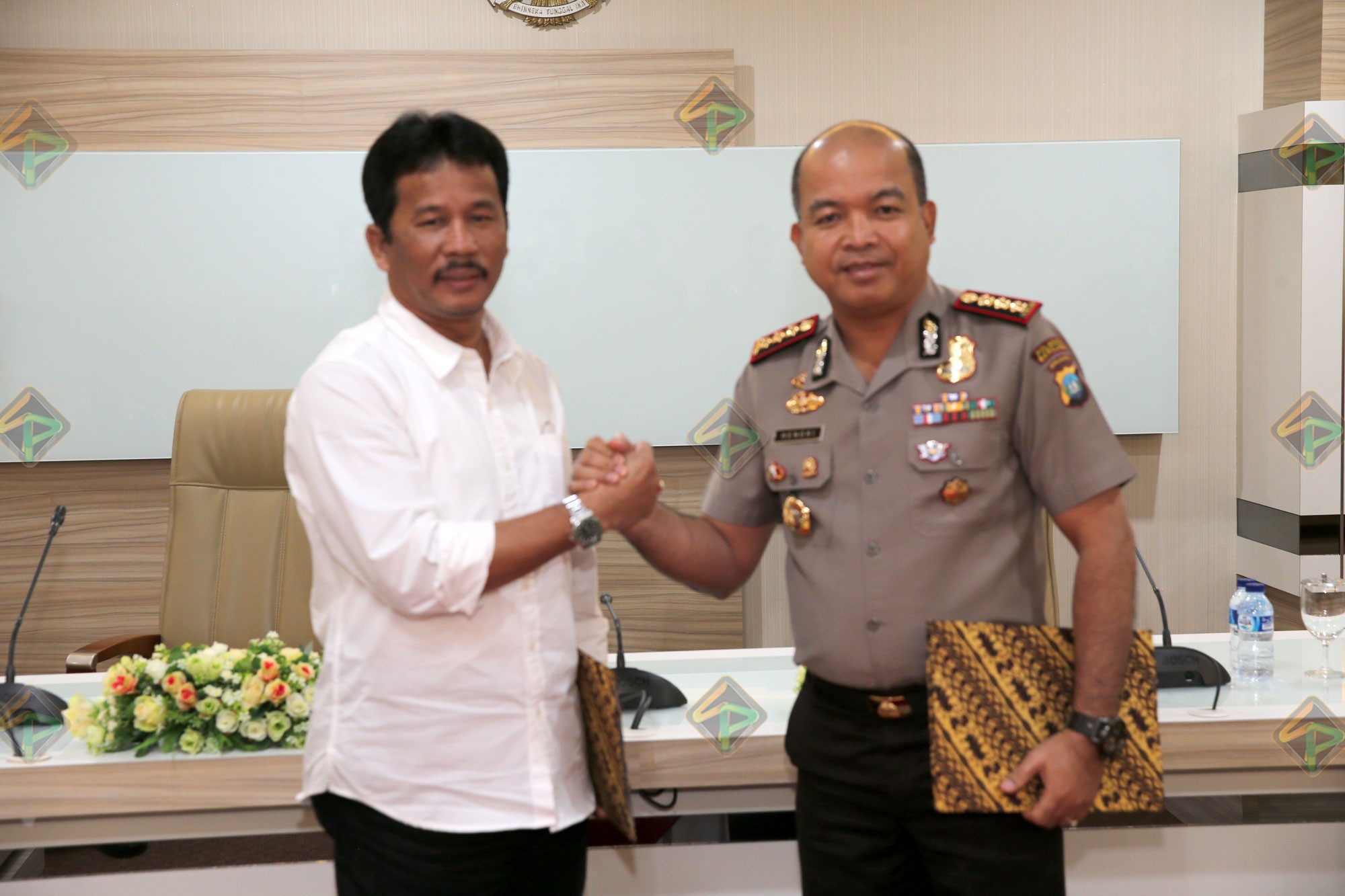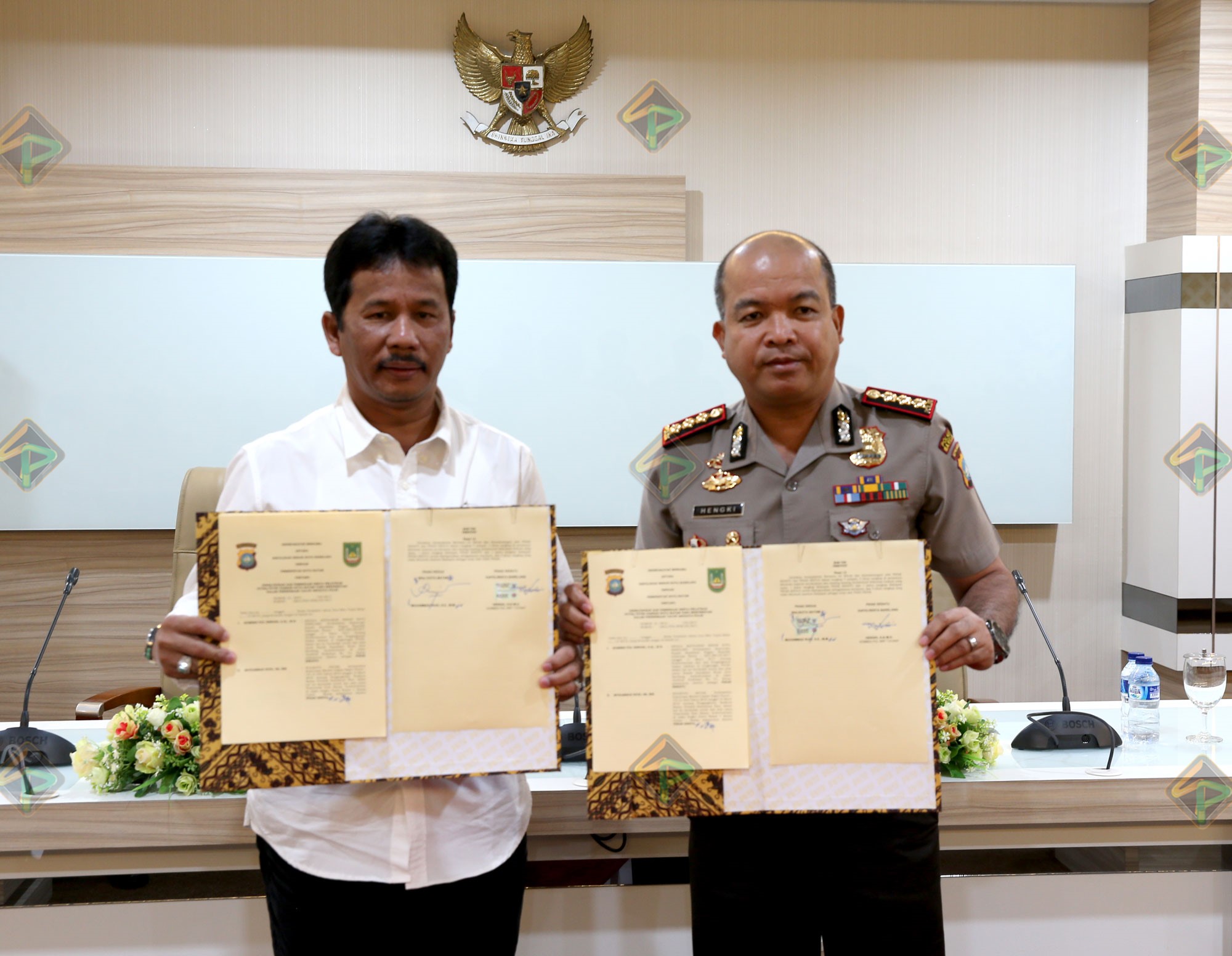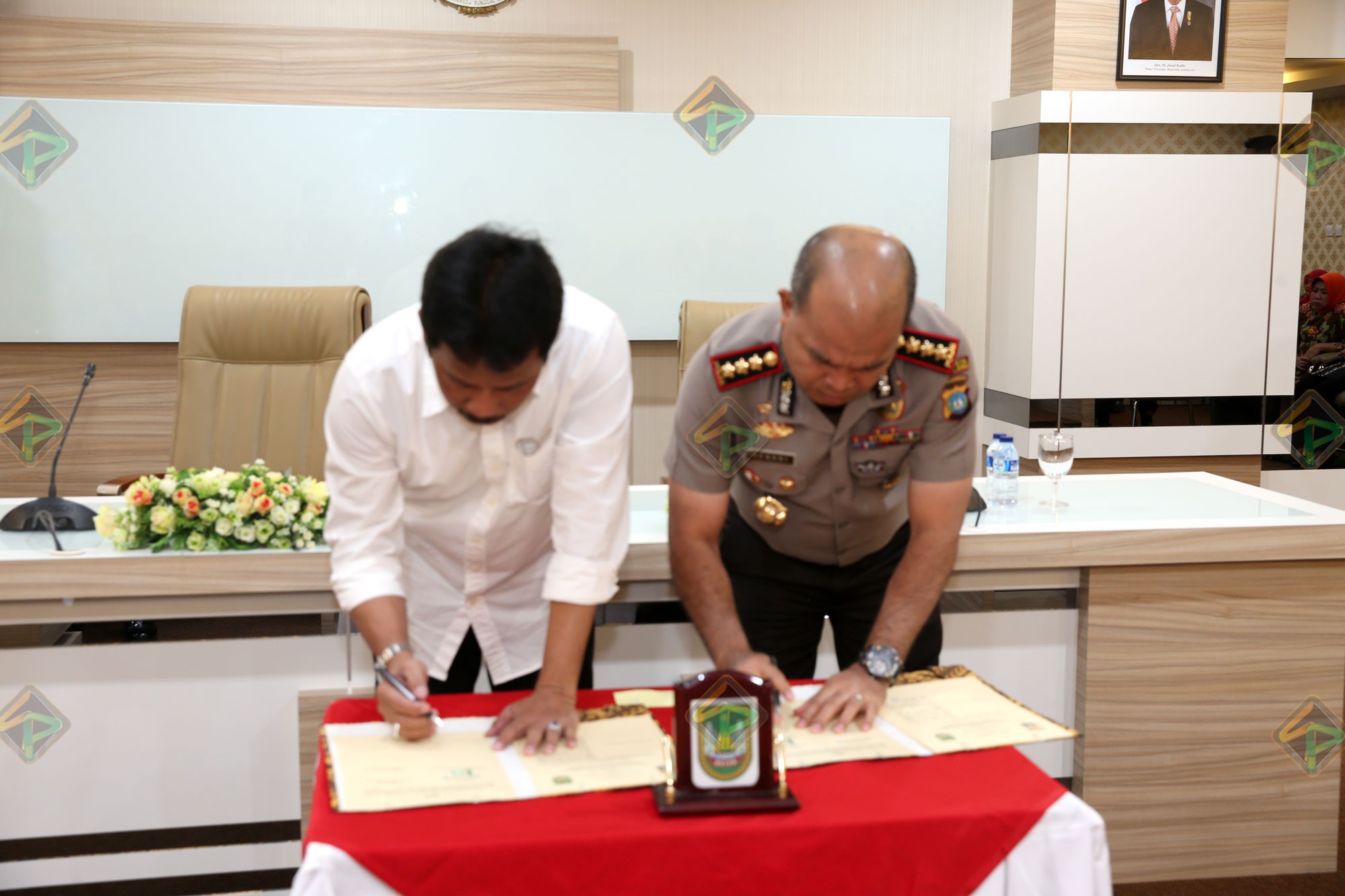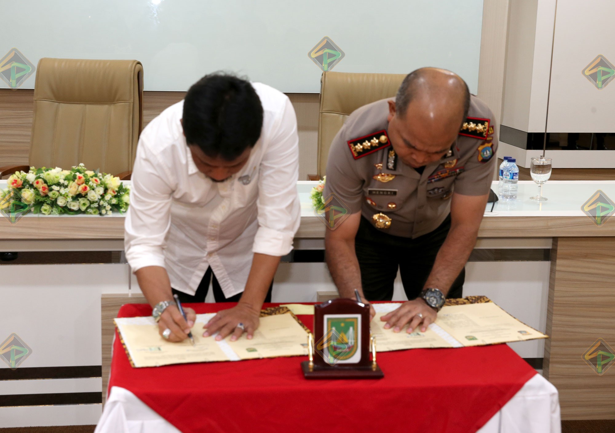 HUMASPEMKOBATAM– Wali Kota Batam, Muhammad Rudi menandatangani nota kesepahaman tentang penelusuran dan pembinaan serta pelatihan putra putri daerah Kota Batam yang berprestasi dalam penerimaan calon anggota Polri dengan Kapolresta Barelang Kombes Pol Hengki, S. IK, MH, Kamis (4/1). Kerjasama ini bertujuan untuk mendidik putra putri tingkal SLTA maupun sumber sarjana untuk di didik menjadi anggota Polri dari pangkat Brigadir dan Kompol.