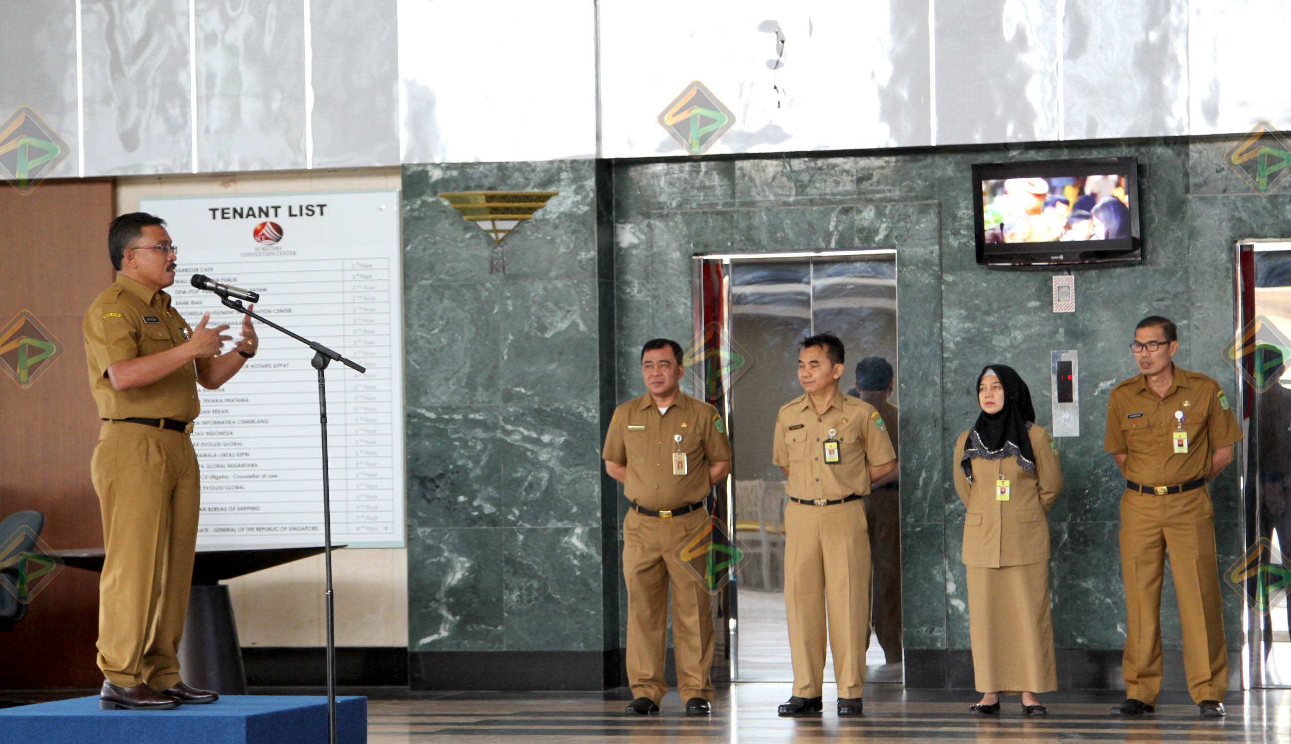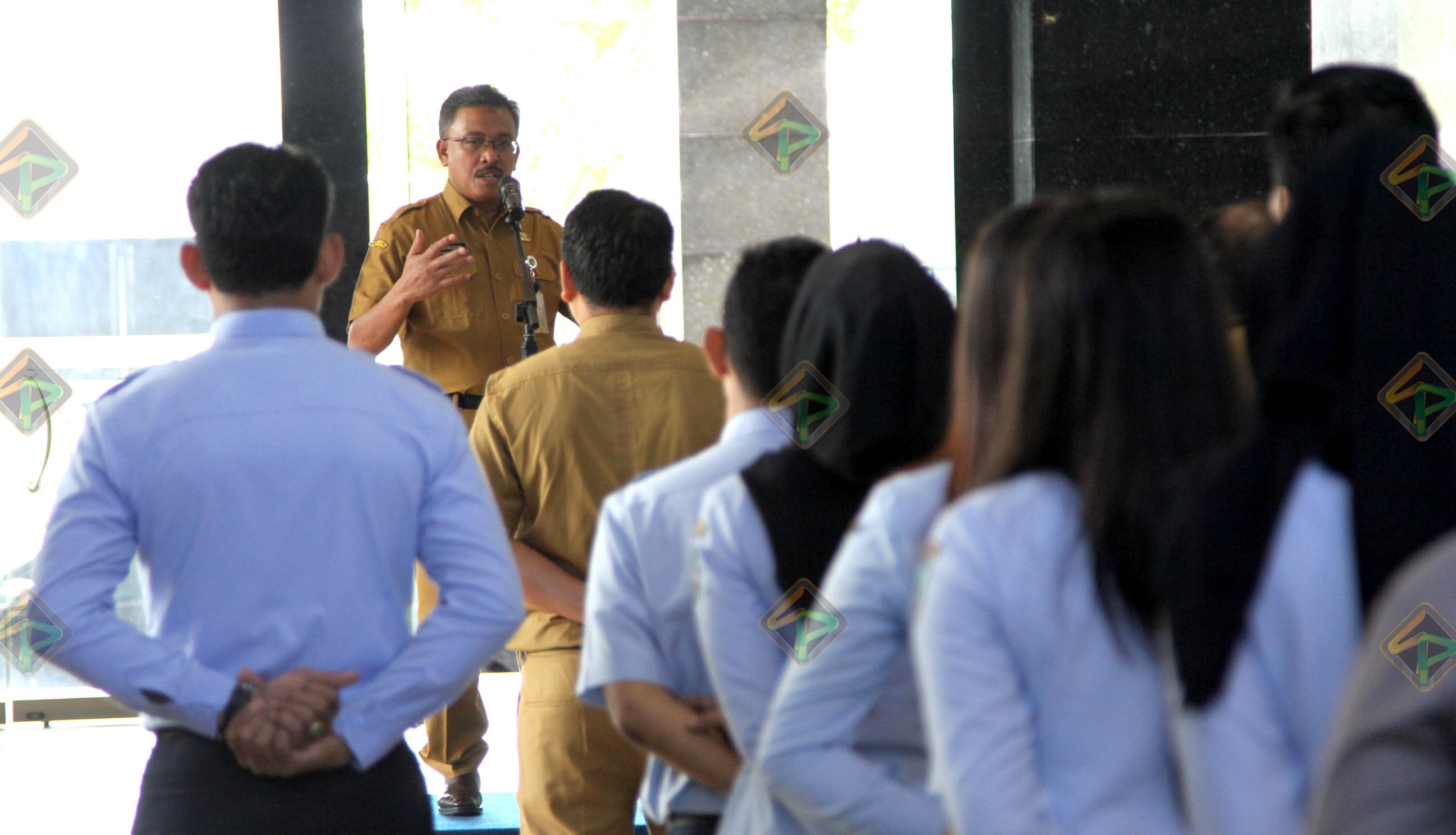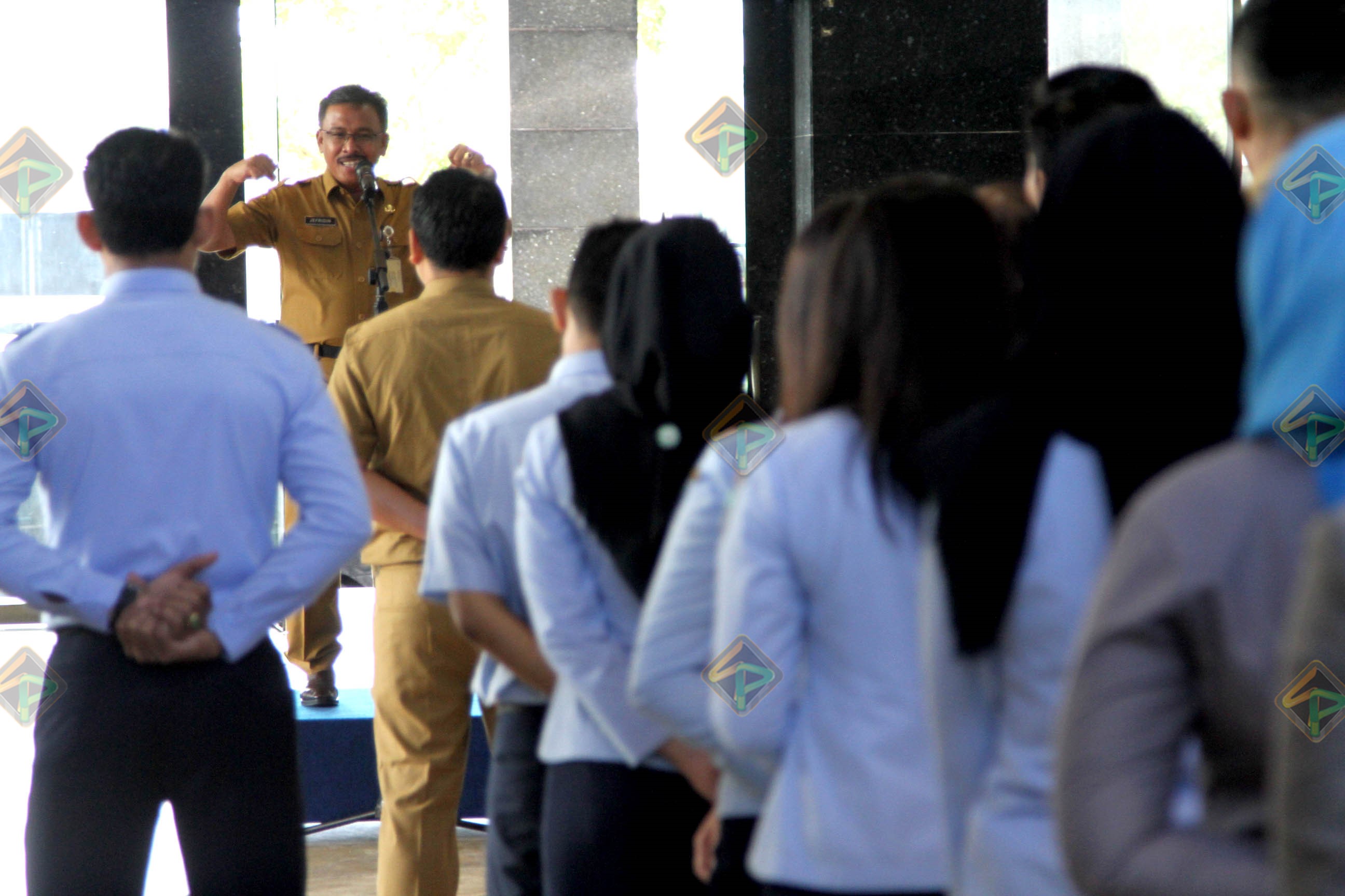 “Lihat orang, senyum. Senyum itu pahala. Kalau ada persoalan di rumah, tak usah dibawa ke sini dulu. Ini yang perlu dikembangkan. Karena walaupun tempat bagus, komitmen pimpinan bagus, kalau kita anak buahnya tidak bisa melaksanakan tugas sebagaimana diinginkan juga tidak baik,” pesannya.