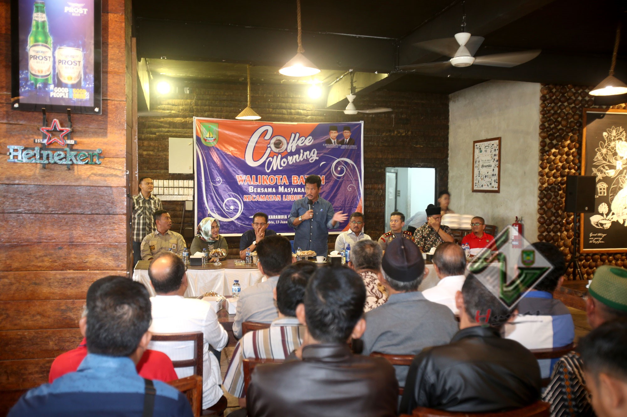 HUMAS PEMKO BATAM – Walikota Batam H Muhammad Rudi bersama Wawako Batam Amsakar memastikan pembagian kios setelah penataan dan revitalisasi pasar induk akan dilakukan transparan, jujur dan berbasis Nomor Induk Kependudukan (NIK). Hal ini di sampaikan Rudi menjawab pertanyaan perwakilan warga di oasar induk pada acara Cofee morning dan silaturahmi bersama masyarakat kecamatan Lubuk Baja, bertempat di Karambia cafe, sabtu pagi (13/1