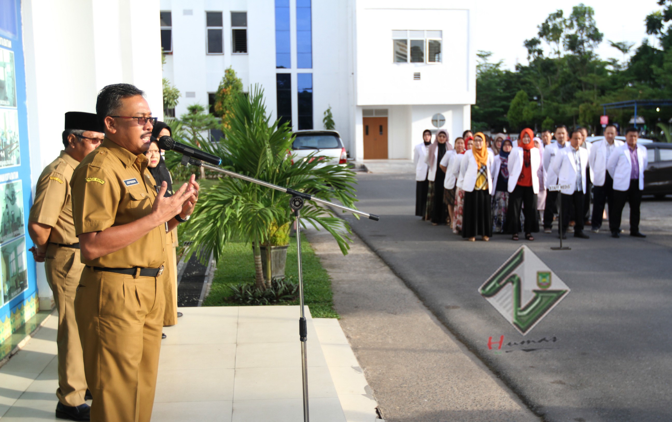 “Bagaimana dalam memberikan pelayanan kepada orang yang sakit itu kita tersenyum. Ini akan menjadi amal yang baik buat kita dan insyaallah pekerjaan pun akan terlaksana dengan baik,” ujar Sekda didepan seluruh jajaran manajemen RSUD kemarin.