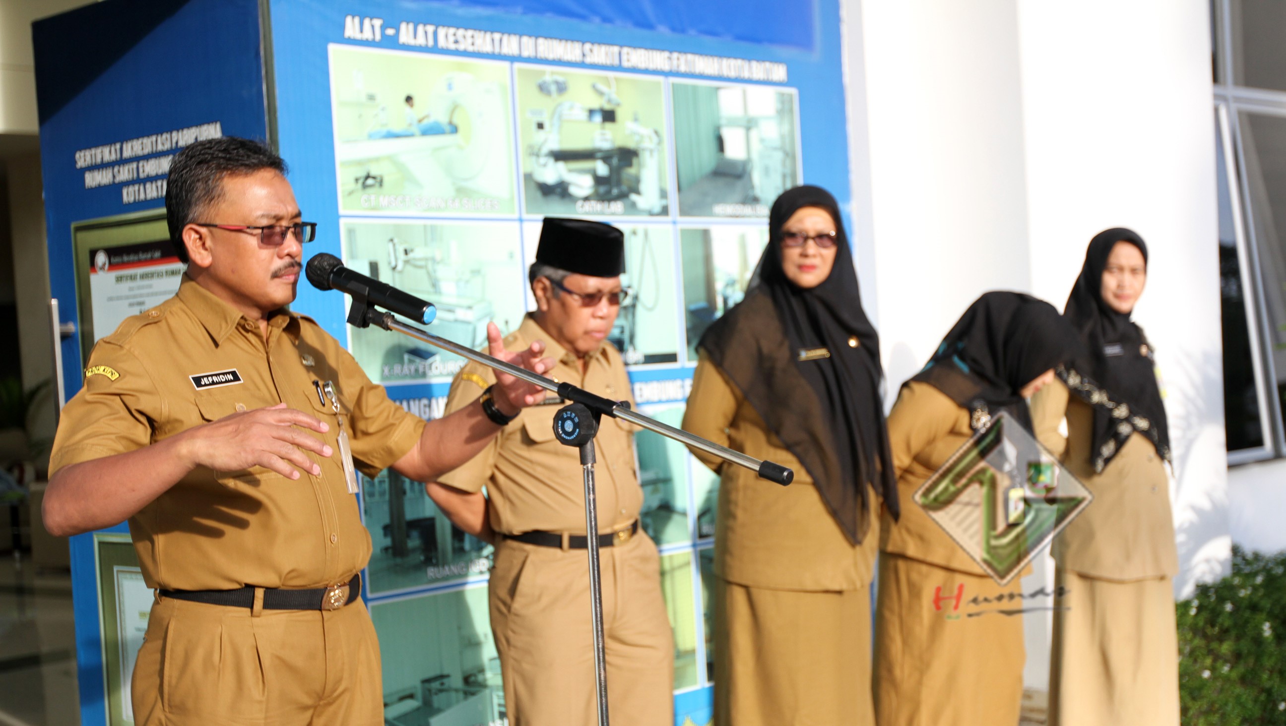HUMAS PEMKO BATAM– Sekretaris Daerah Kota (Sekdako) Batam, Jefridin memimpin upacara di Rumah Sakit Umum Daerah (RSUD) Embung Fatimah, Senin (22/1). Dalam arahannya Sekda meminta agar seluruh petugas yang memberikan pelayanan di RSUD Embung Fatimah dapat memberikan pelayanan yang baik kepada masyarakat. Hal lain yang disampaikannya agar pegawai disiplin karena apabila tidak masuk selama 46 hari maka pegawai yang bersangkutan dapat diberhentikan secara hormat.