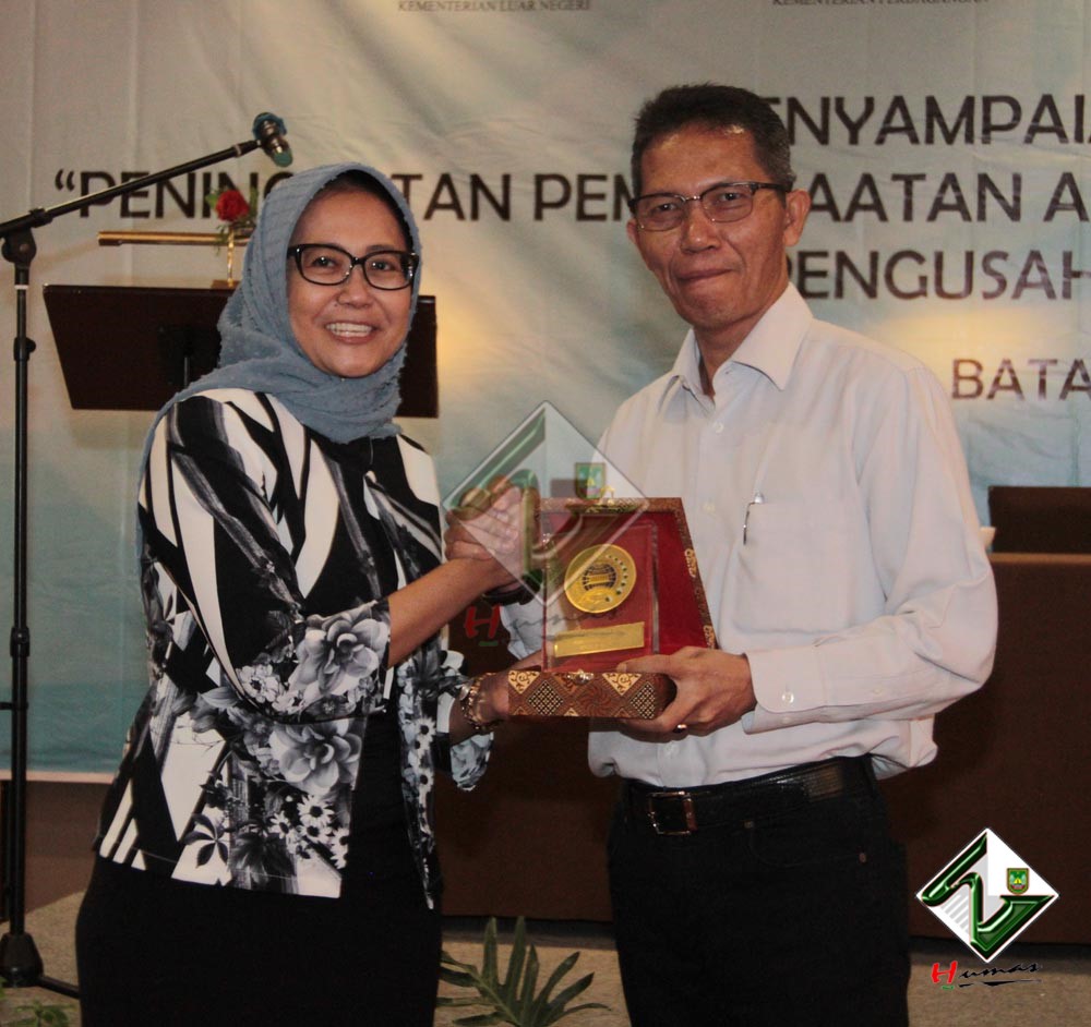 Usai membuka kegiatan tersebut, Wawako menerima plakat dari Kepala Seksi (Kasi), Industri, Perdagangan, Riset dan Teknologi Kementerian Luar Negeri (Krmenlu), Nur Rokhma Muliana.(HP)