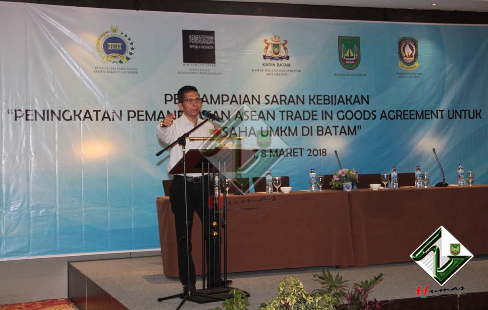 “Kegiatan ini sangat penting. Batam sebagai salah satu daerah yang ditetapkan sebagai daerah perdagangan dan pelabuhan bebas, tempat keluar orang dan barang. Peluang ini harus bisa dimanfaatkan oleh pelaku UMKM di Kota Batam,” ungkap Amsakar sesaat sebelum membuka acara Peningkatan Pemanfaatan ASEAN Trade in Goods Agreement untuk Pengusaha UMKM di Batam  di Hotel Sahid Batam, Kamis (8/3).