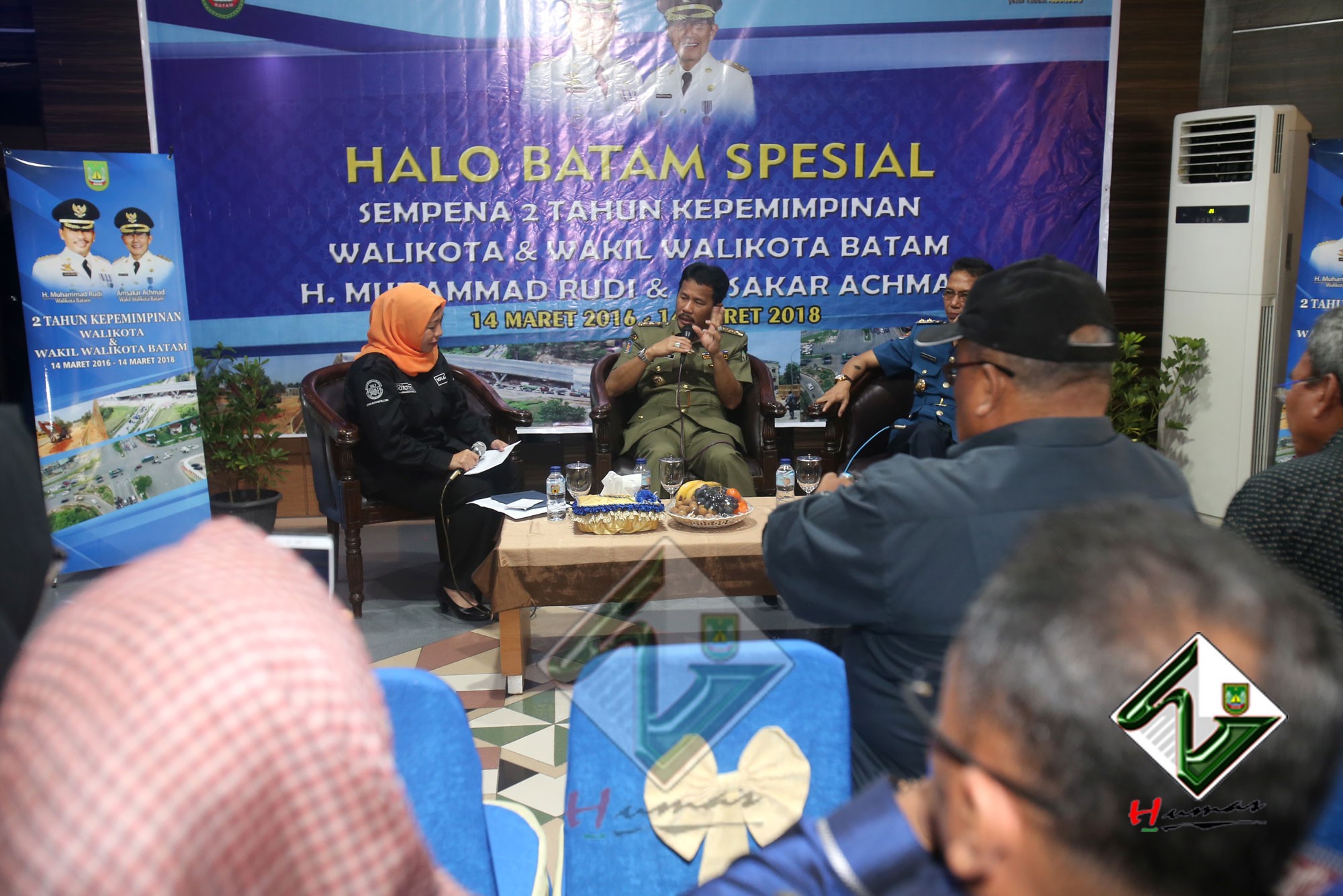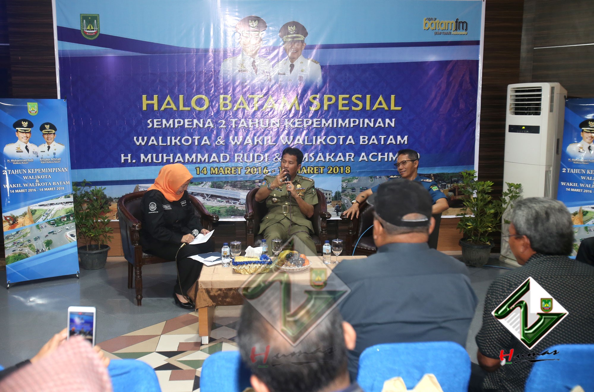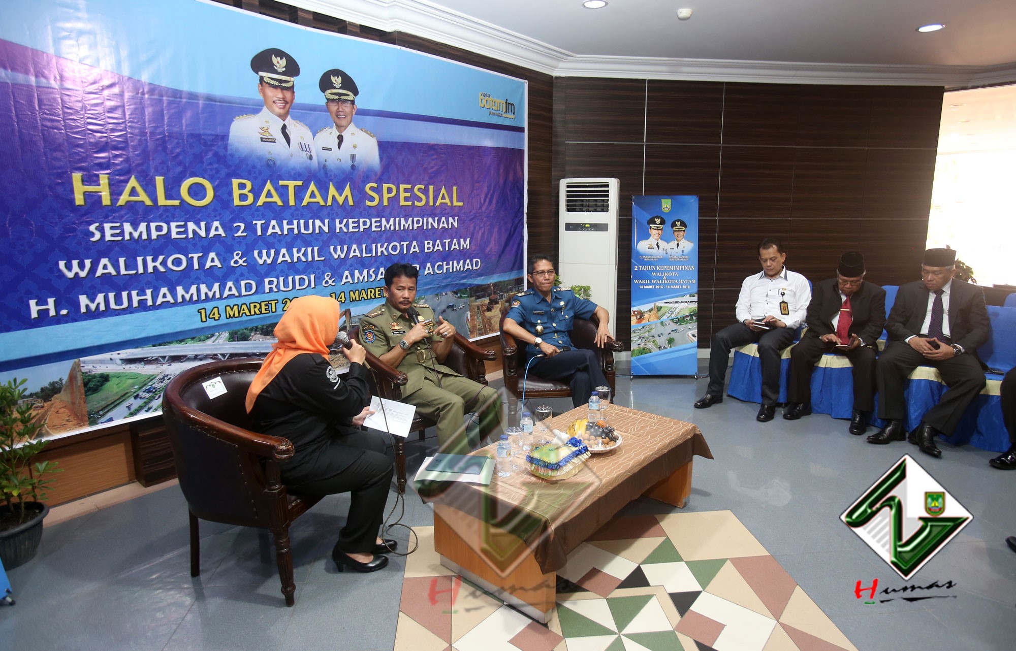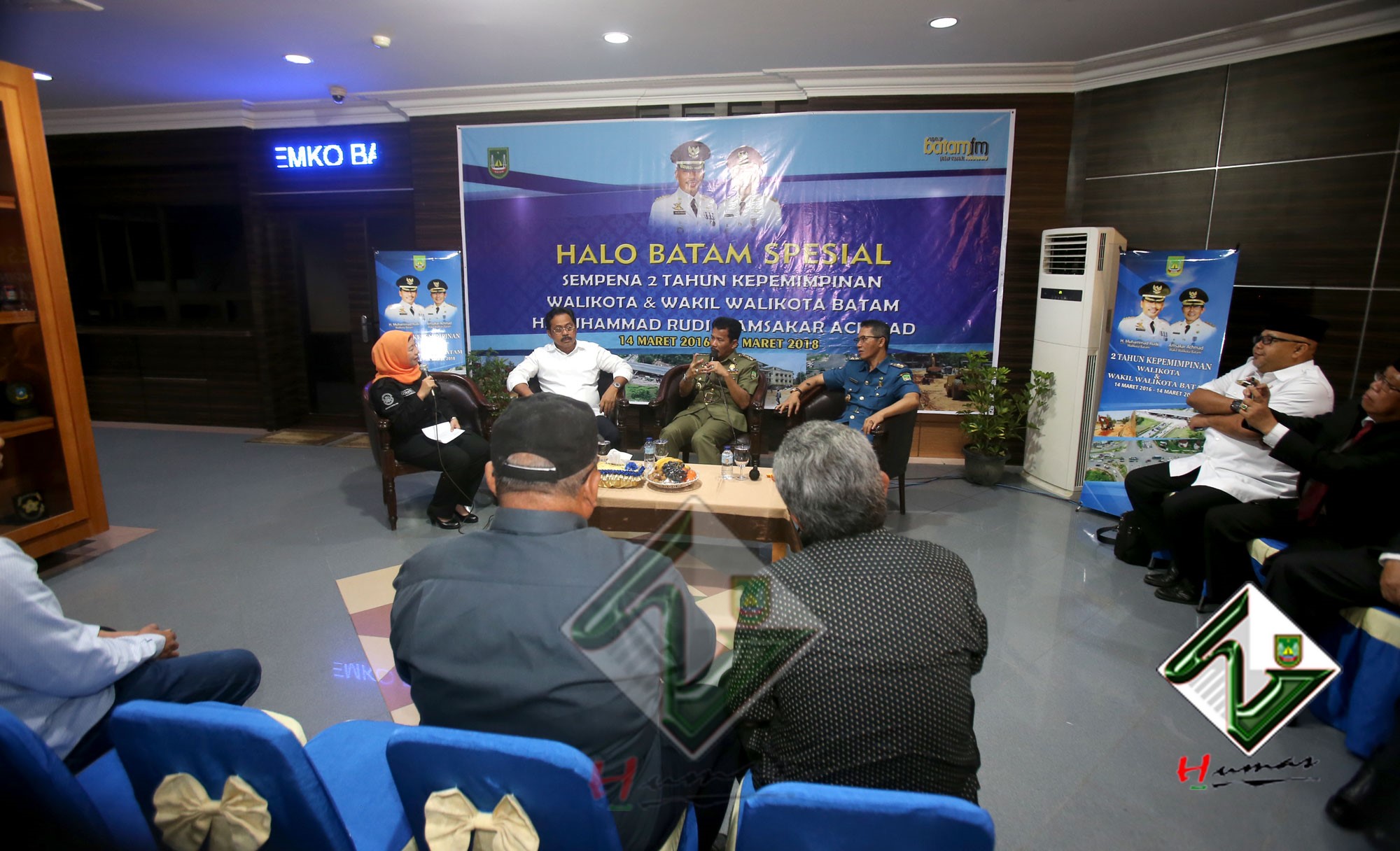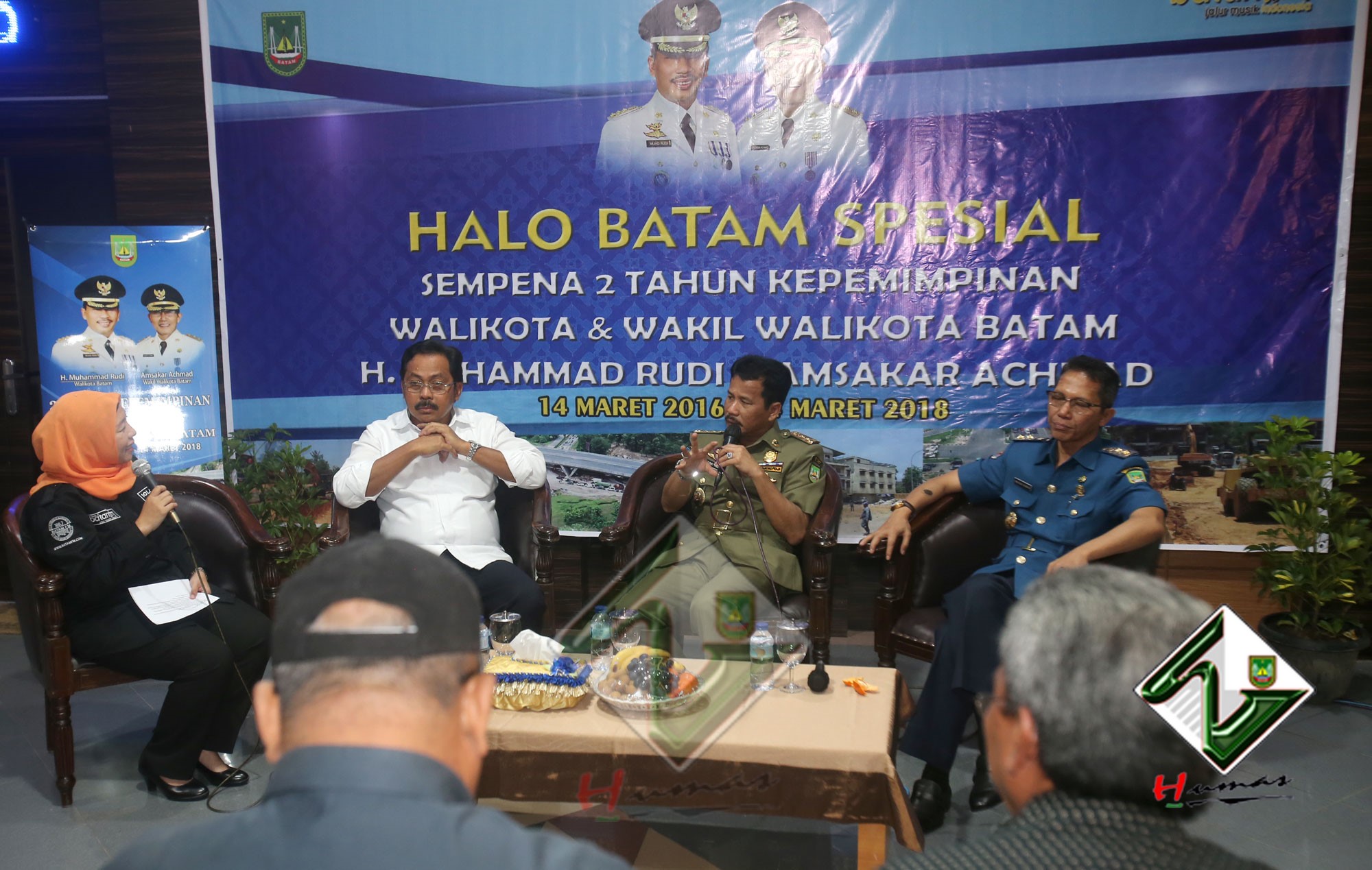 HUMAS PEMKO BATAM– Wali Kota Batam, Muhammad Rudi bersama dengan Wakil Wali Kota (Wawako) Batam, Amsakar Achmad memaparkan progres pembangunan Kota Batam selama dua tahun kepemimpinan. Keberhasilan apa saya yang telah dicapai disampaikan secara khusus melalui dialog interaktif Hallo Batam special sempena 2 tahun kepemimpinan Rudi-Amsakar, Rabu (14/3). Untuk mendapatkan masukan dari warga turut mengundang Forum Komunikasi Hallo Batam, pimpinan OPD dan masyarakat Batam.