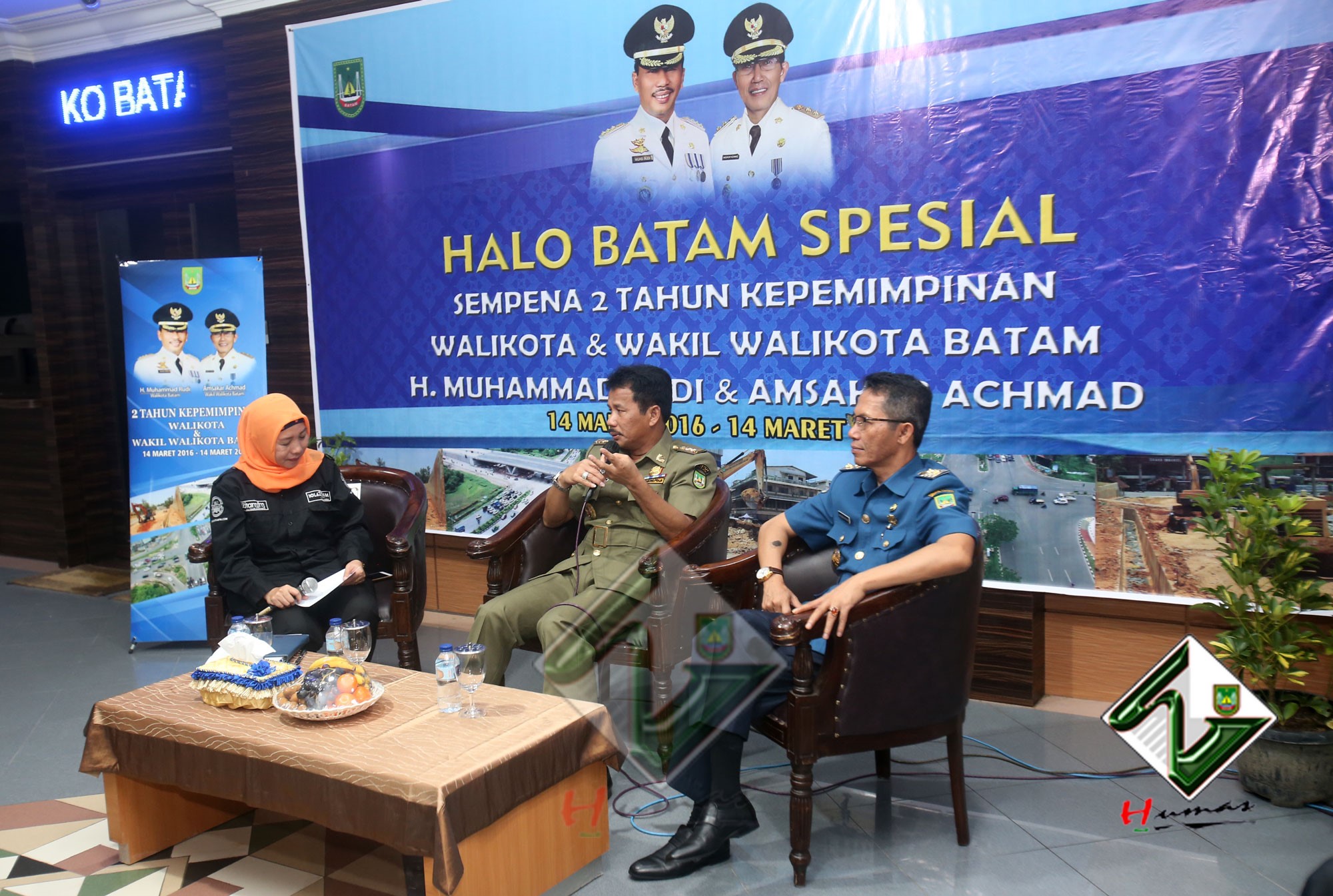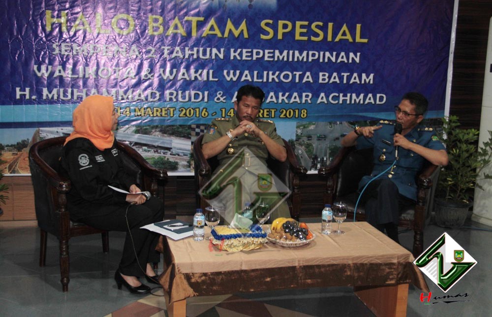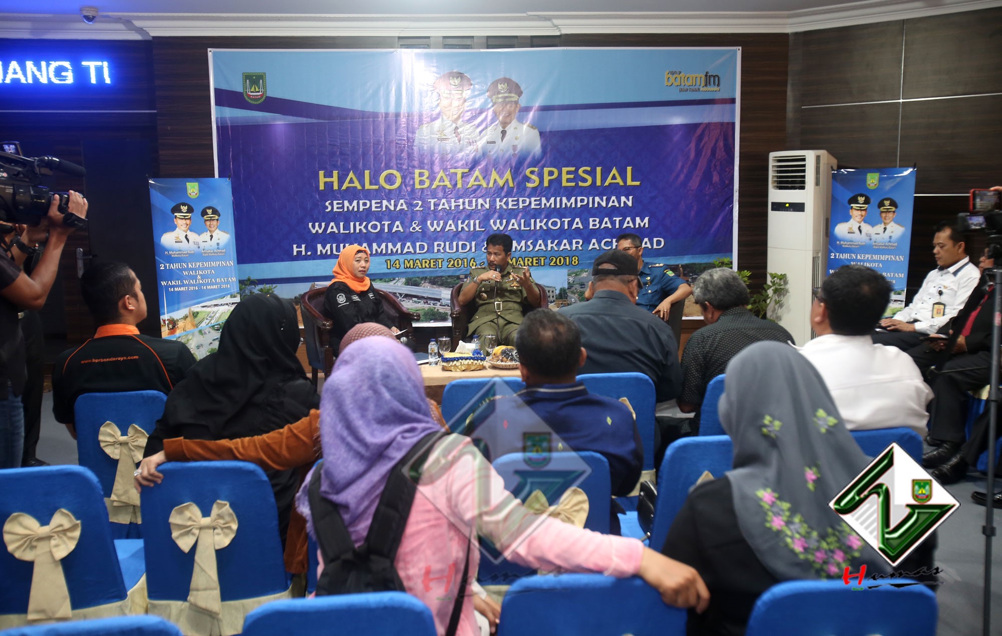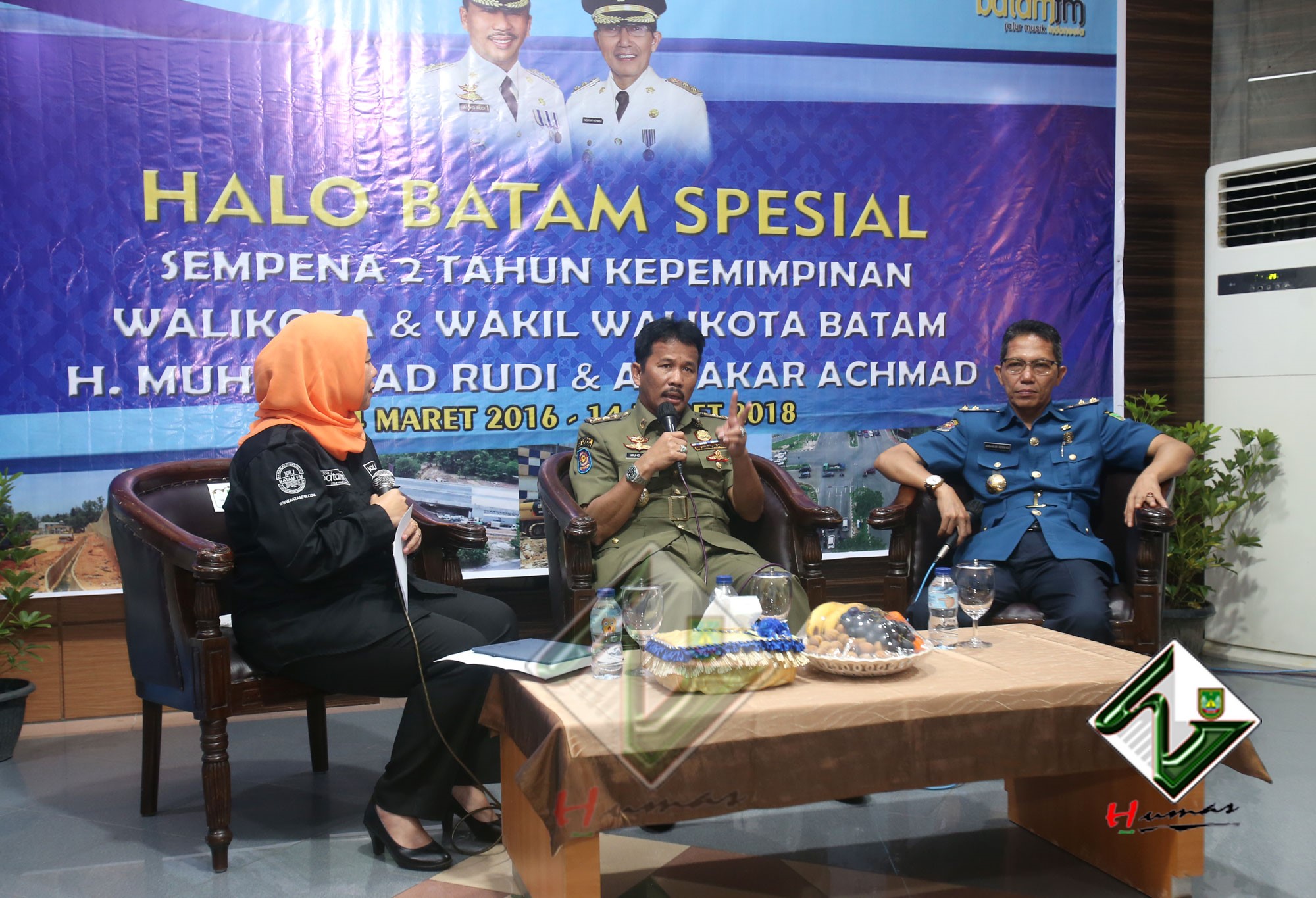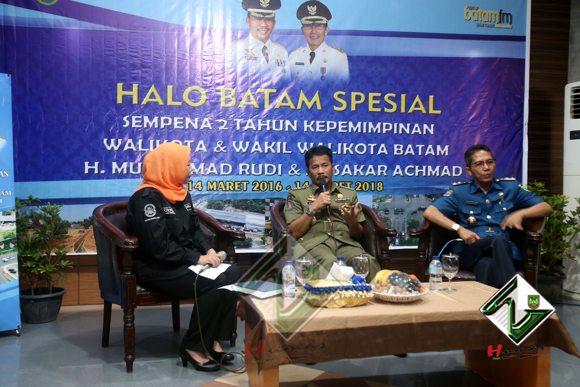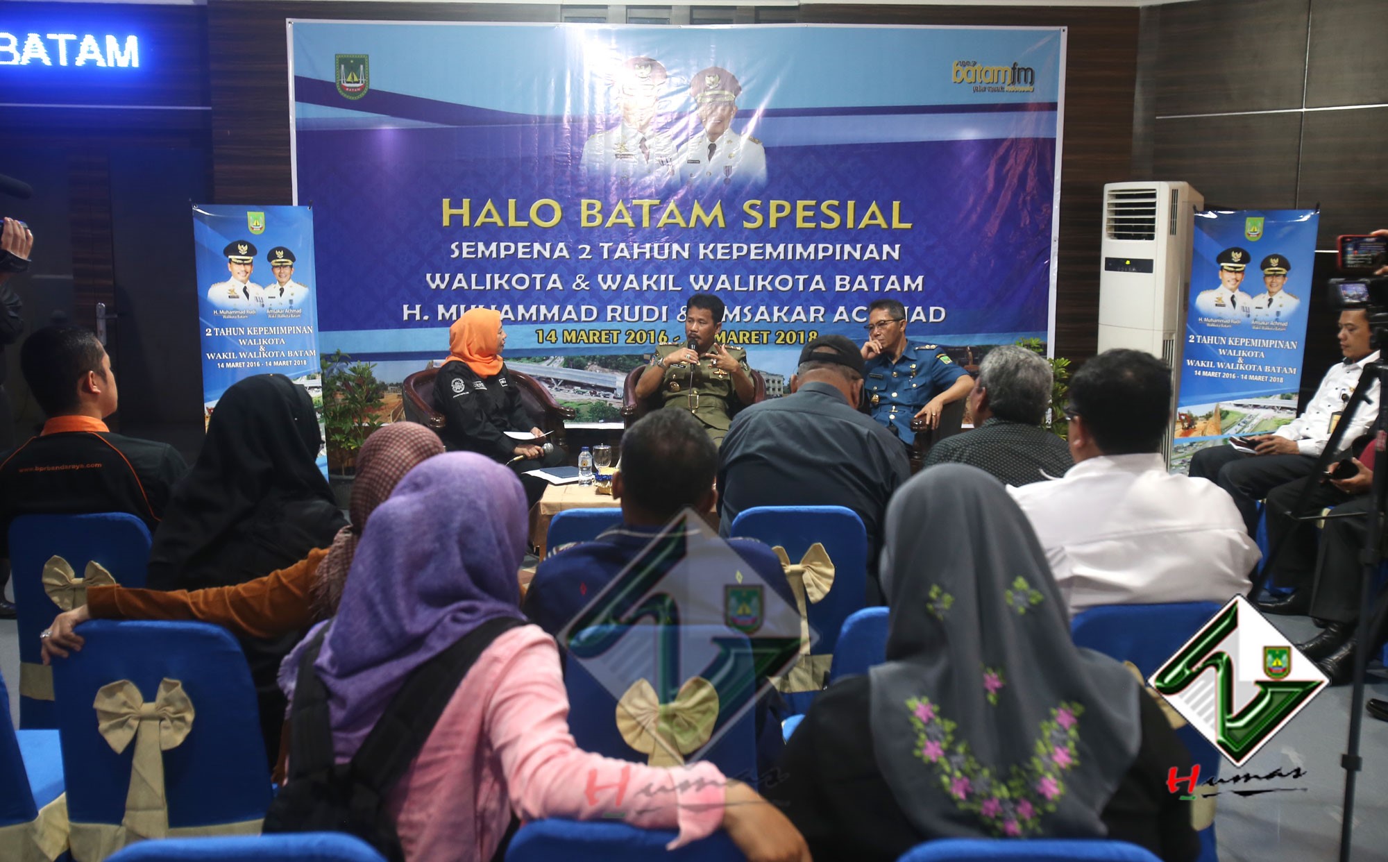 HUMAS PEMKO BATAM– Wali Kota Batam, Muhammad Rudi bersama dengan Wakil Wali Kota (Wawako) Batam, Amsakar Achmad memaparkan progres pembangunan Kota Batam selama dua tahun kepemimpinan. Keberhasilan apa saya yang telah dicapai disampaikan secara khusus melalui dialog interaktif Hallo Batam special sempena 2 tahun kepemimpinan Rudi-Amsakar, Rabu (14/3). Untuk mendapatkan masukan dari warga turut mengundang Forum Komunikasi Hallo Batam, pimpinan OPD dan masyarakat Batam.