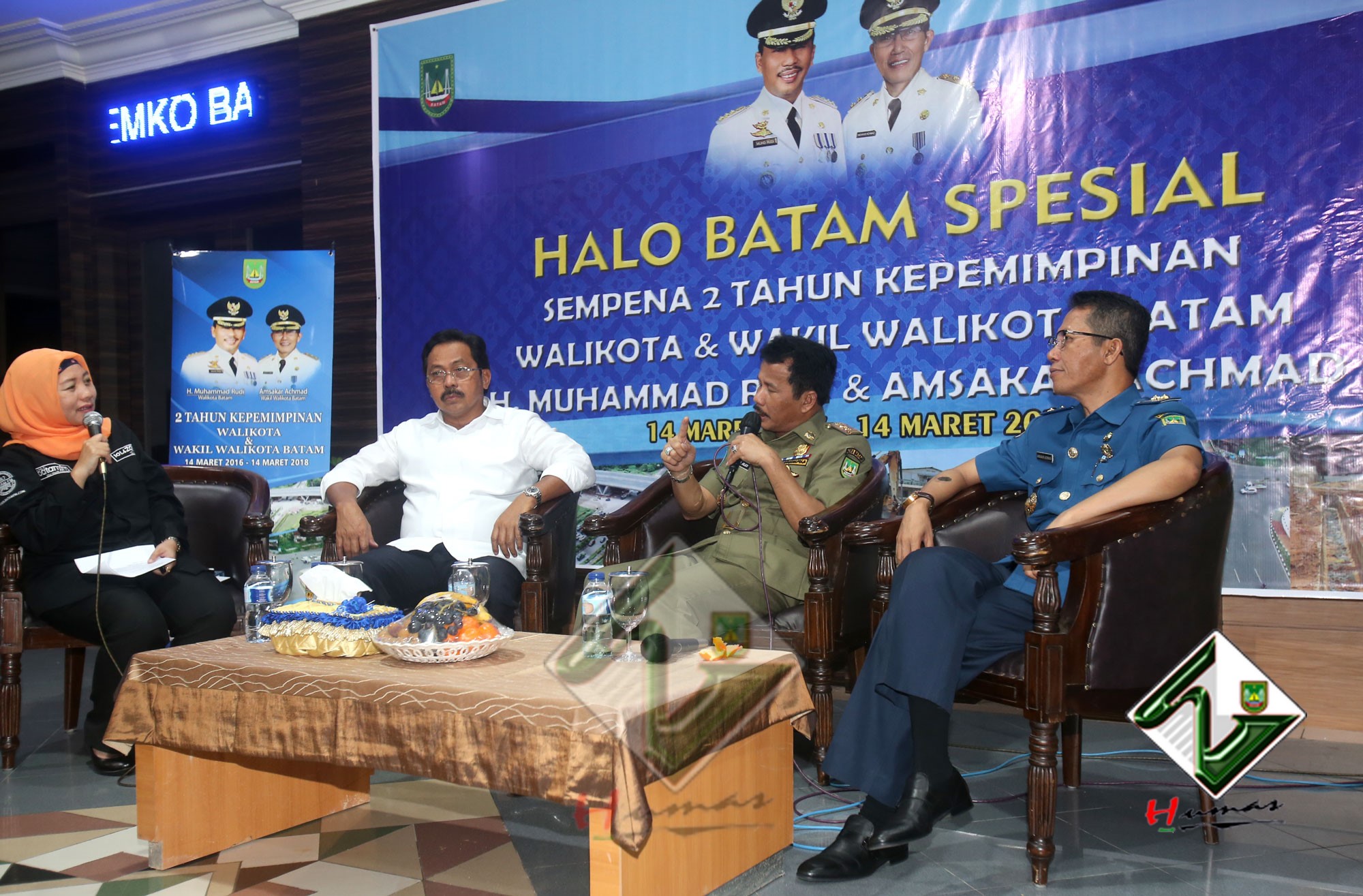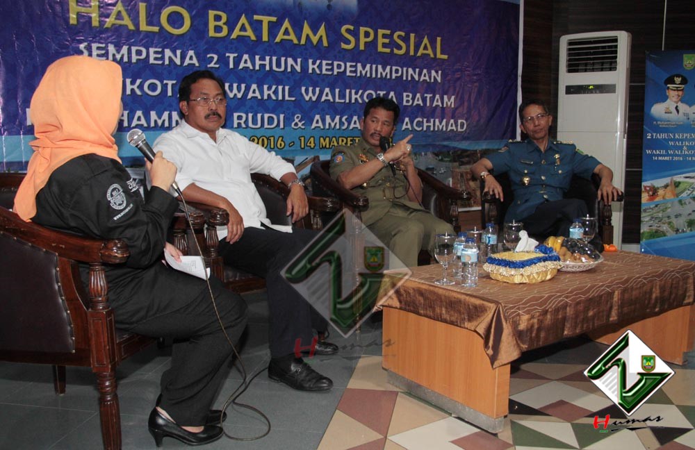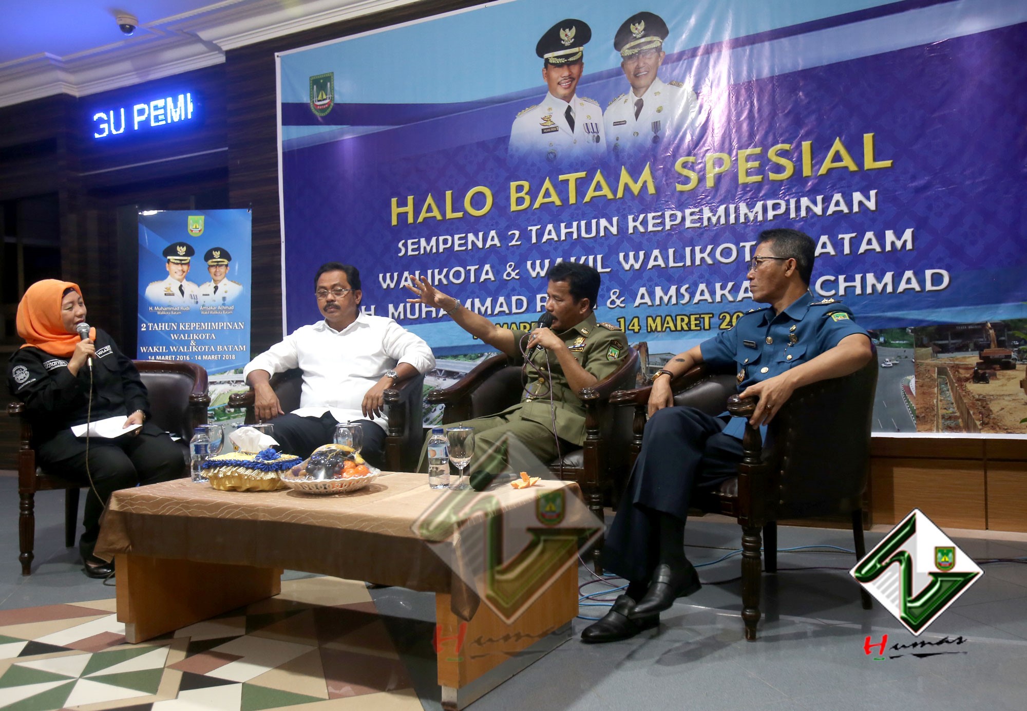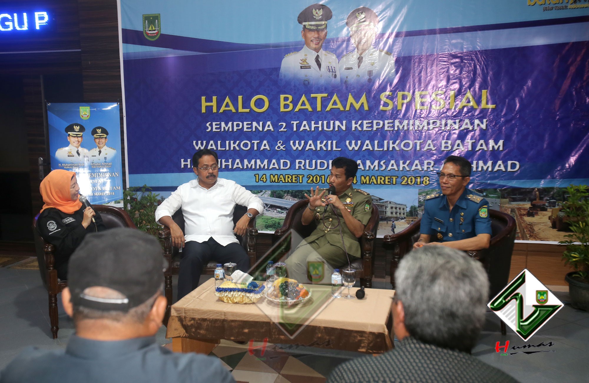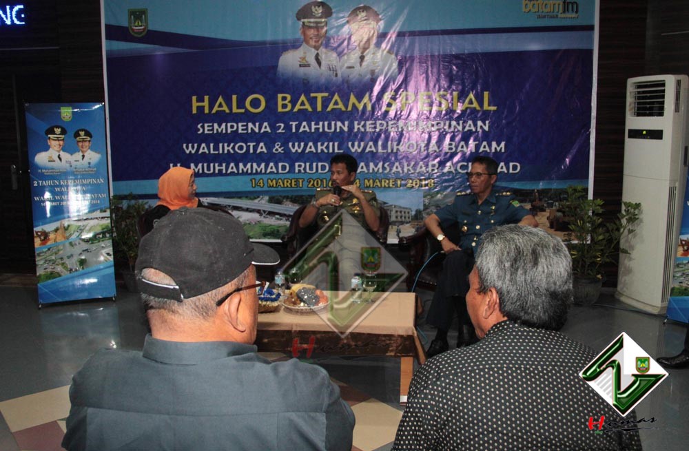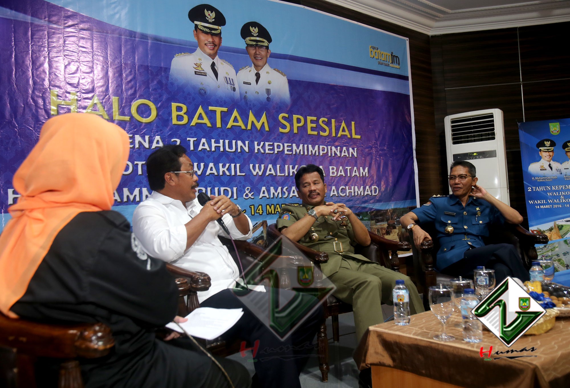 HUMAS PEMKO BATAM– Wali Kota Batam, Muhammad Rudi bersama dengan Wakil Wali Kota (Wawako) Batam, Amsakar Achmad memaparkan progres pembangunan Kota Batam selama dua tahun kepemimpinan. Keberhasilan apa saya yang telah dicapai disampaikan secara khusus melalui dialog interaktif Hallo Batam special sempena 2 tahun kepemimpinan Rudi-Amsakar, Rabu (14/3). Untuk mendapatkan masukan dari warga turut mengundang Forum Komunikasi Hallo Batam, pimpinan OPD dan masyarakat Batam.
