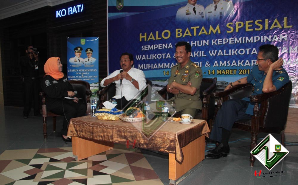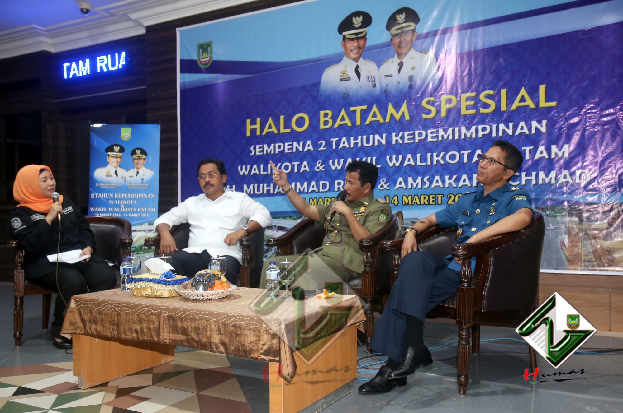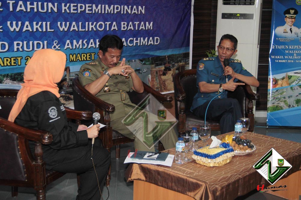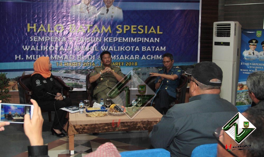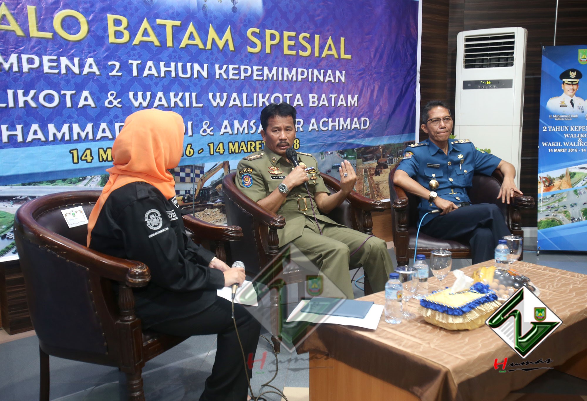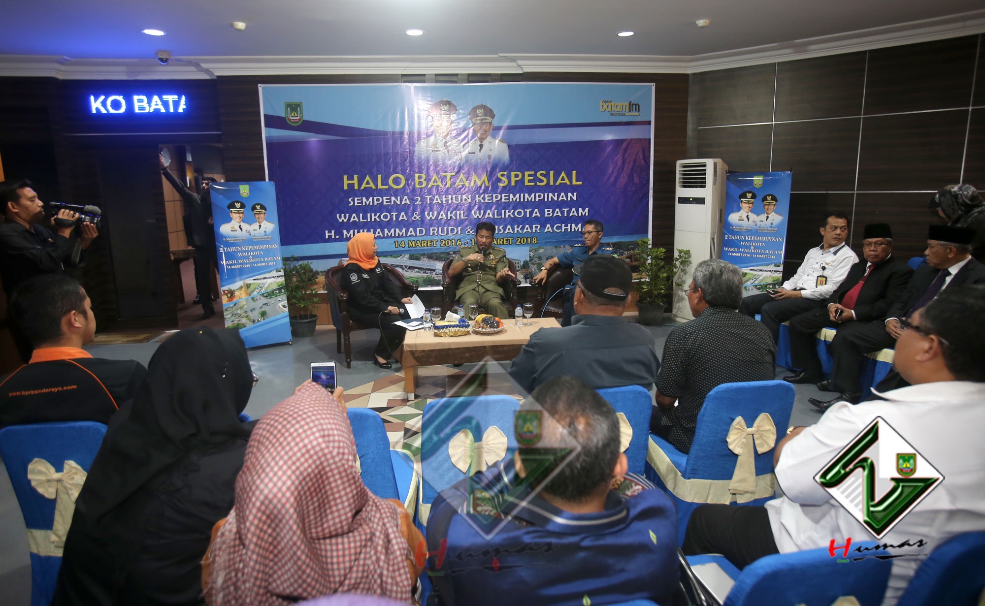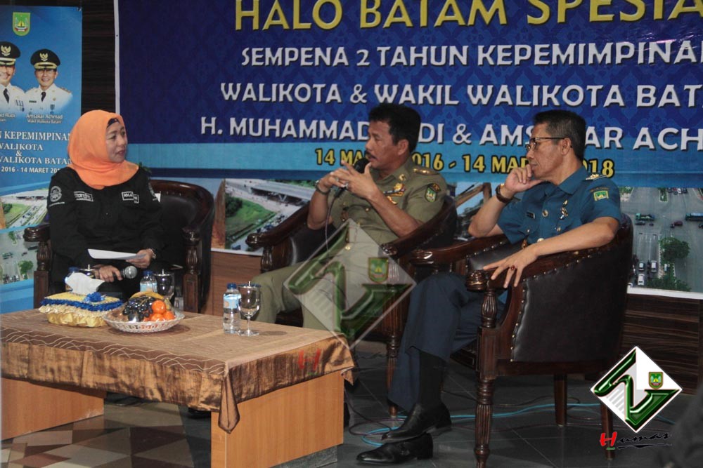 HUMAS PEMKO BATAM– Wali Kota Batam, Muhammad Rudi bersama dengan Wakil Wali Kota (Wawako) Batam, Amsakar Achmad memaparkan progres pembangunan Kota Batam selama dua tahun kepemimpinan. Keberhasilan apa saya yang telah dicapai disampaikan secara khusus melalui dialog interaktif Hallo Batam special sempena 2 tahun kepemimpinan Rudi-Amsakar, Rabu (14/3). Untuk mendapatkan masukan dari warga turut mengundang Forum Komunikasi Hallo Batam, pimpinan OPD dan masyarakat Batam.