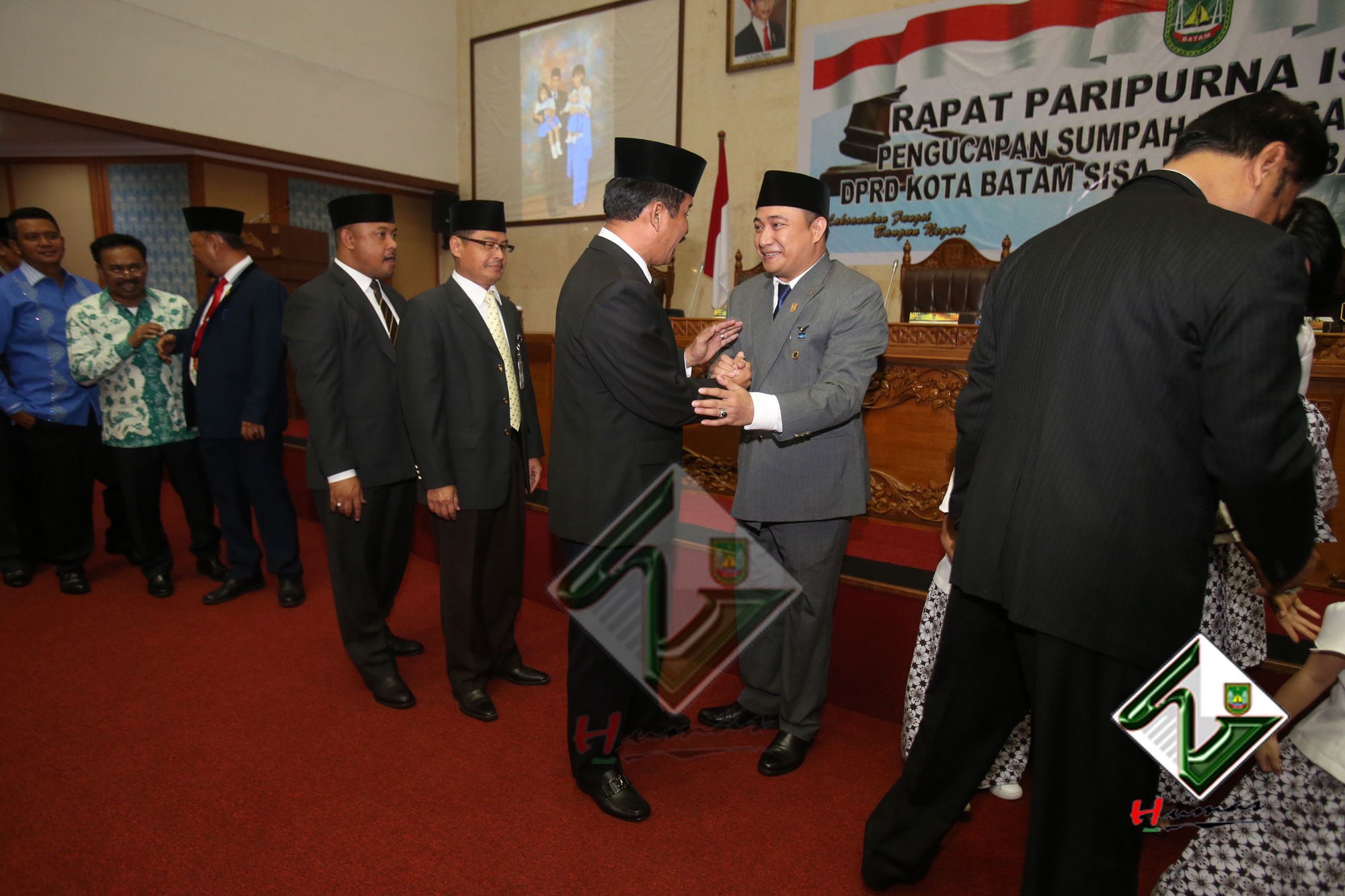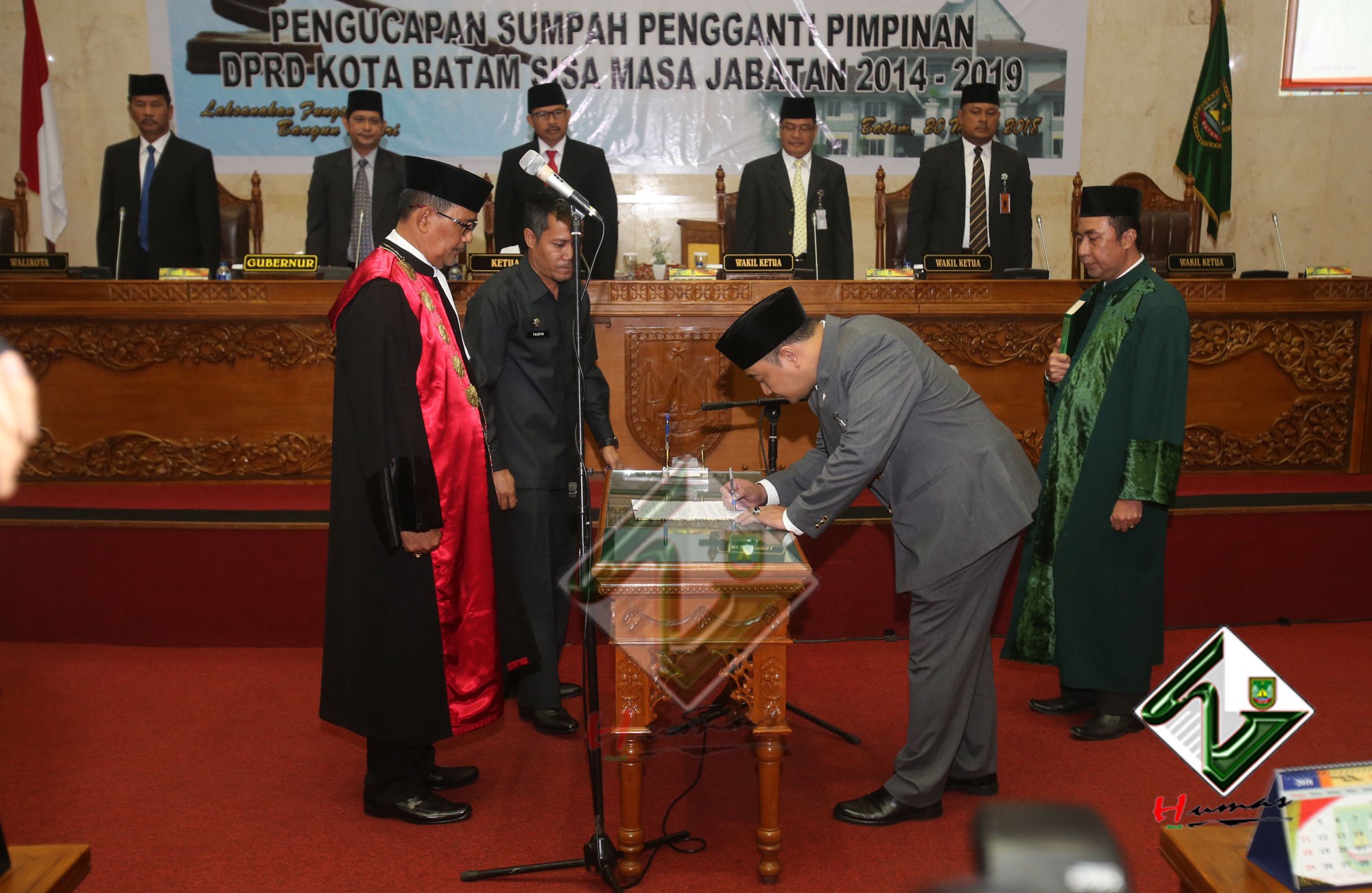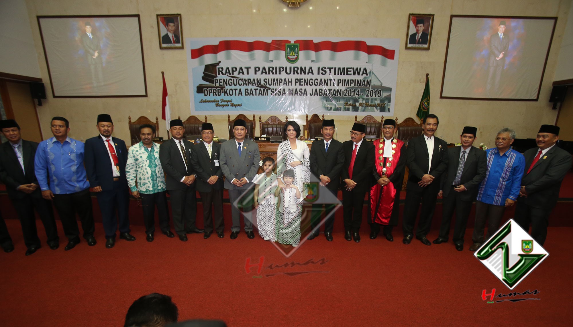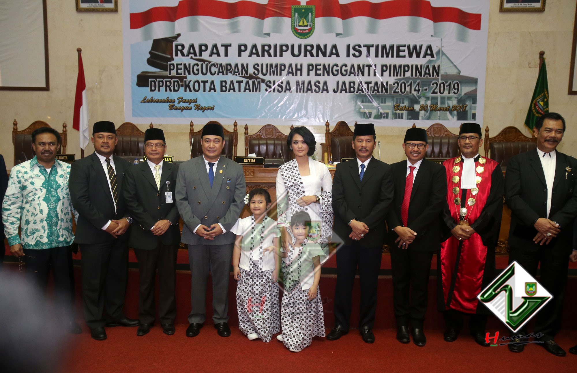 HUMAS PEMKO BATAM– Wali Kota Batam, Muhammad Rudi bersama dengan Wakil Wali Kota (Wawako) Batam, Amsakar Achmad menghadiri Rapat Paripurna Istimewa DPRD Kota Batam dengan agenda Pengucapan Sumpah Pengganti Pimpinan DPRD Kota Batam sisa masa jabatan 2014-2019, Selasa (20/3). Dalam Rapat Paripurna Istimewa, Tengku Hamzah Husein sebelumnya menjabat sebagai Wakil Ketua III DPRD Kota Batam digantikan oleh Helmy Hemilton. Pengucapan sumpah dipimpin langsung oleh Ketua Pengadilan Negeri Batam, Syahlan.
