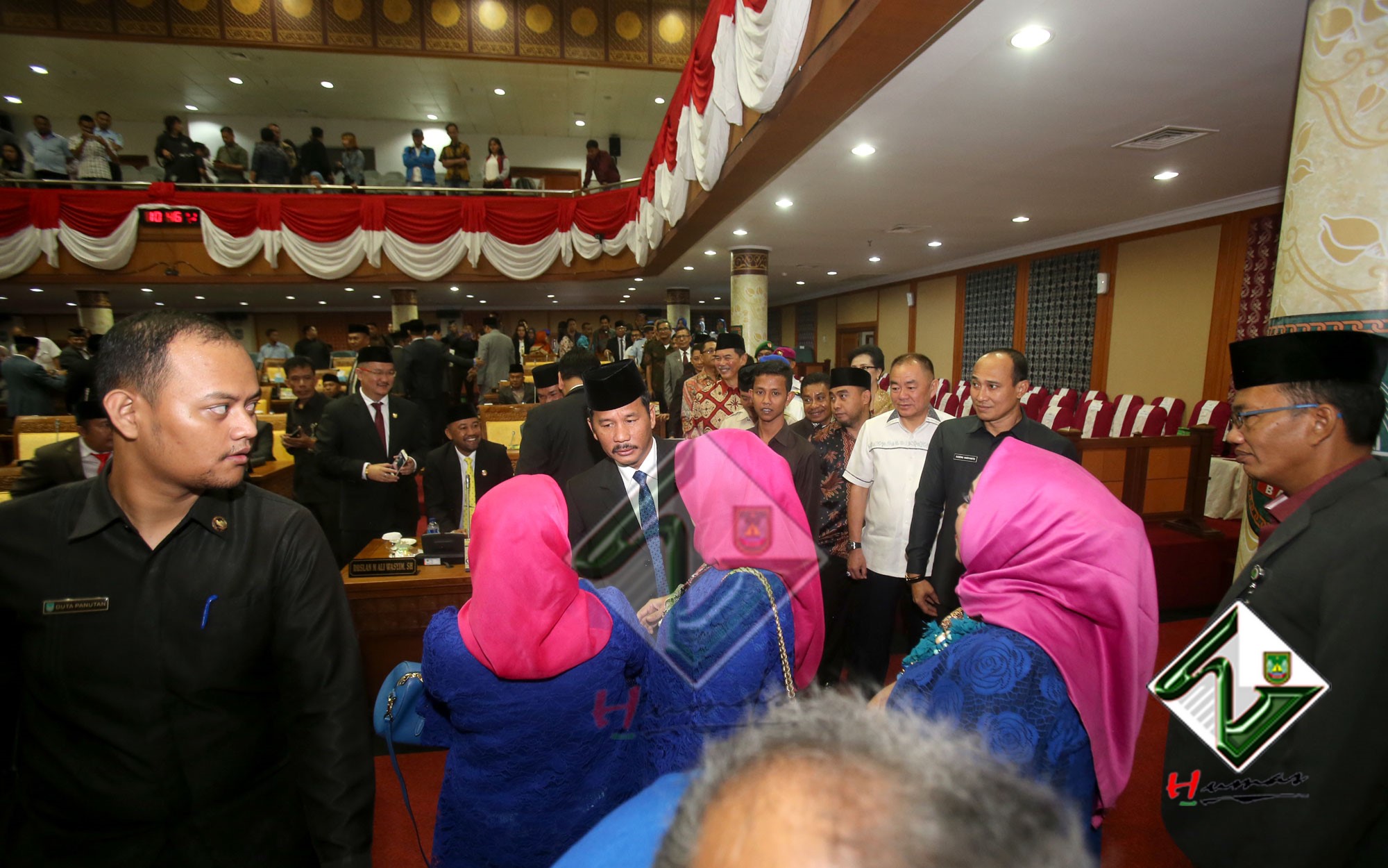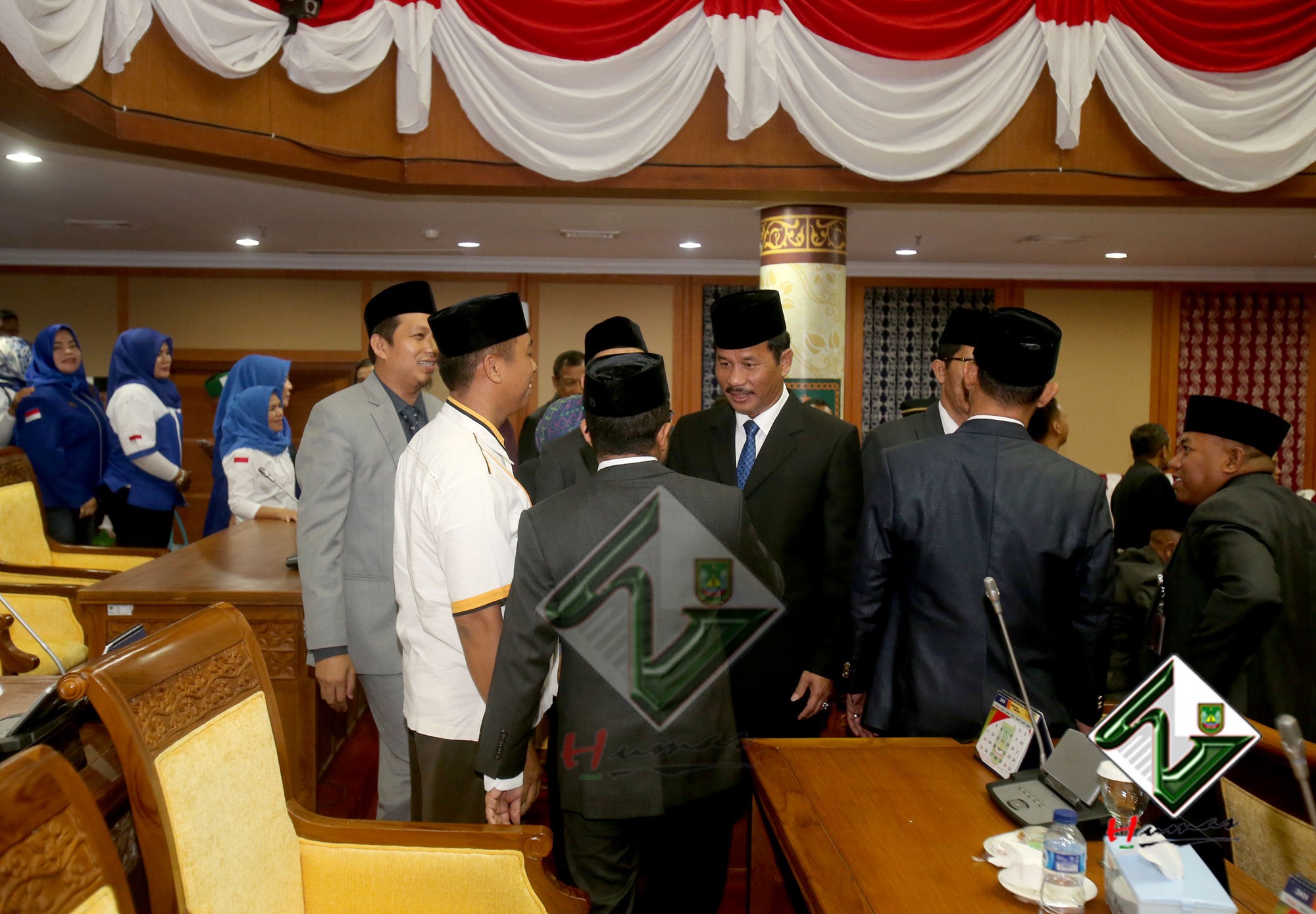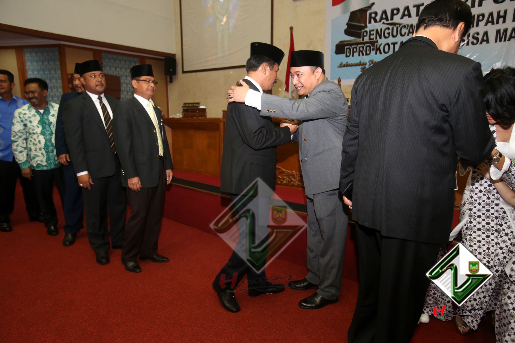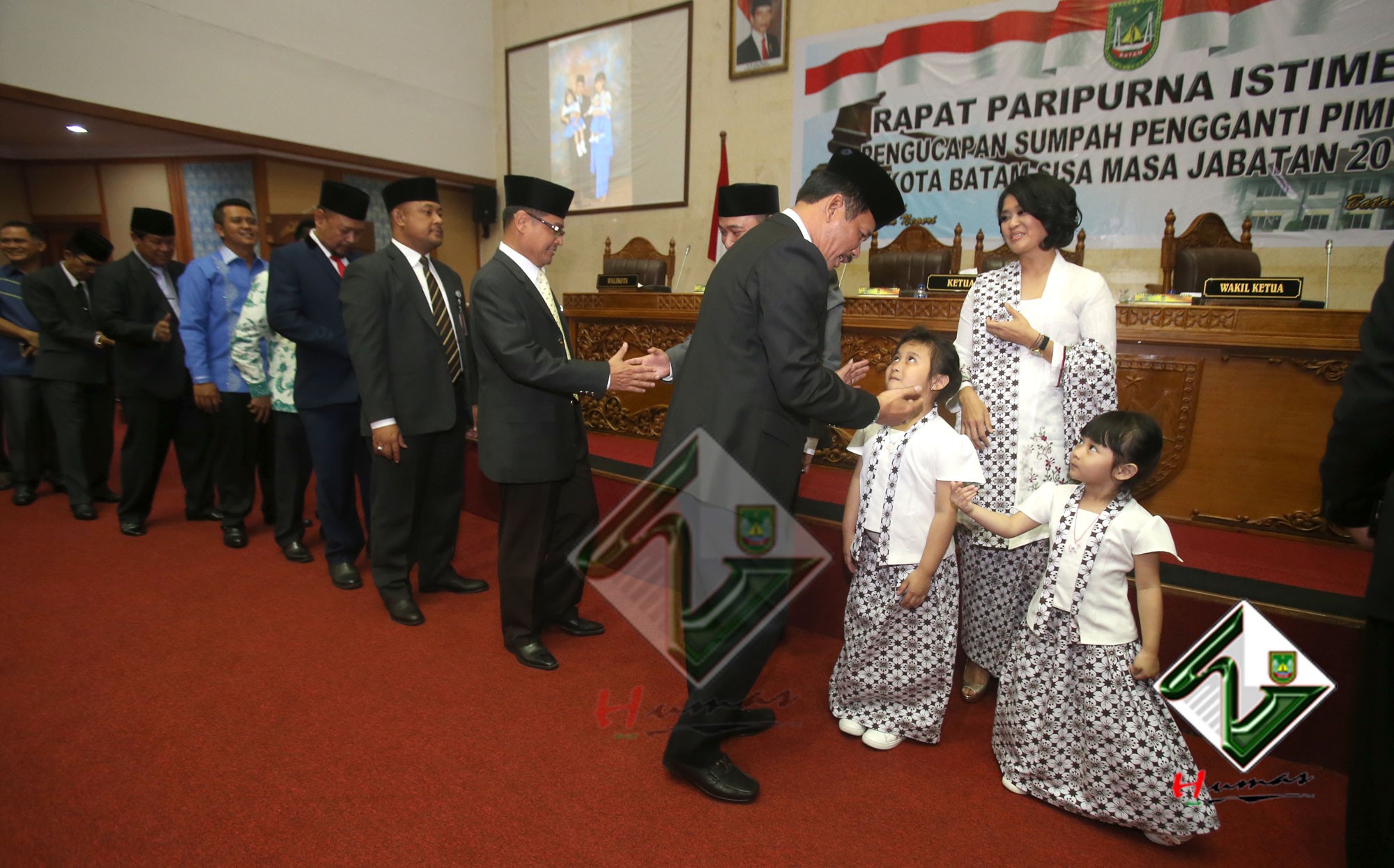 HUMAS PEMKO BATAM– Wali Kota Batam, Muhammad Rudi bersama dengan Wakil Wali Kota (Wawako) Batam, Amsakar Achmad menghadiri Rapat Paripurna Istimewa DPRD Kota Batam dengan agenda Pengucapan Sumpah Pengganti Pimpinan DPRD Kota Batam sisa masa jabatan 2014-2019, Selasa (20/3). Dalam Rapat Paripurna Istimewa, Tengku Hamzah Husein sebelumnya menjabat sebagai Wakil Ketua III DPRD Kota Batam digantikan oleh Helmy Hemilton. Pengucapan sumpah dipimpin langsung oleh Ketua Pengadilan Negeri Batam, Syahlan.