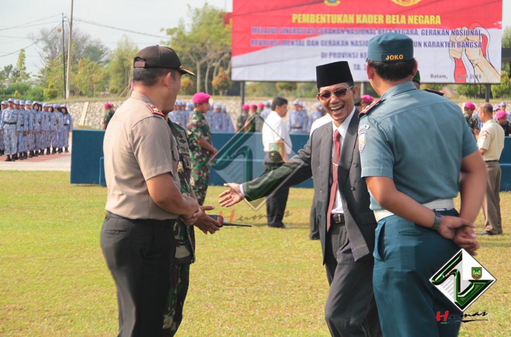 HUMAS PEMKO BATAM– Wakil Walikota Batam, Amsakar Achmad mengatakan kewajiban bela negara tidak hanya menjadi tanggungjawab aparat TNI dan Polri. Seluruh elemen masyarakat wajib bekerjasama dalam upaya mempertahankan Negara Kesatuan Republik Indonesia dari berbagai ancaman. Hal ini disampaikan Amsakar saat menjadi inspektur upacara Pembentukan Kader Bela Negara Provinsi Kepulauan Riau di Mako Yonif 10 Marinir/SBY di Setokok Bulang, Rabu (4/4).