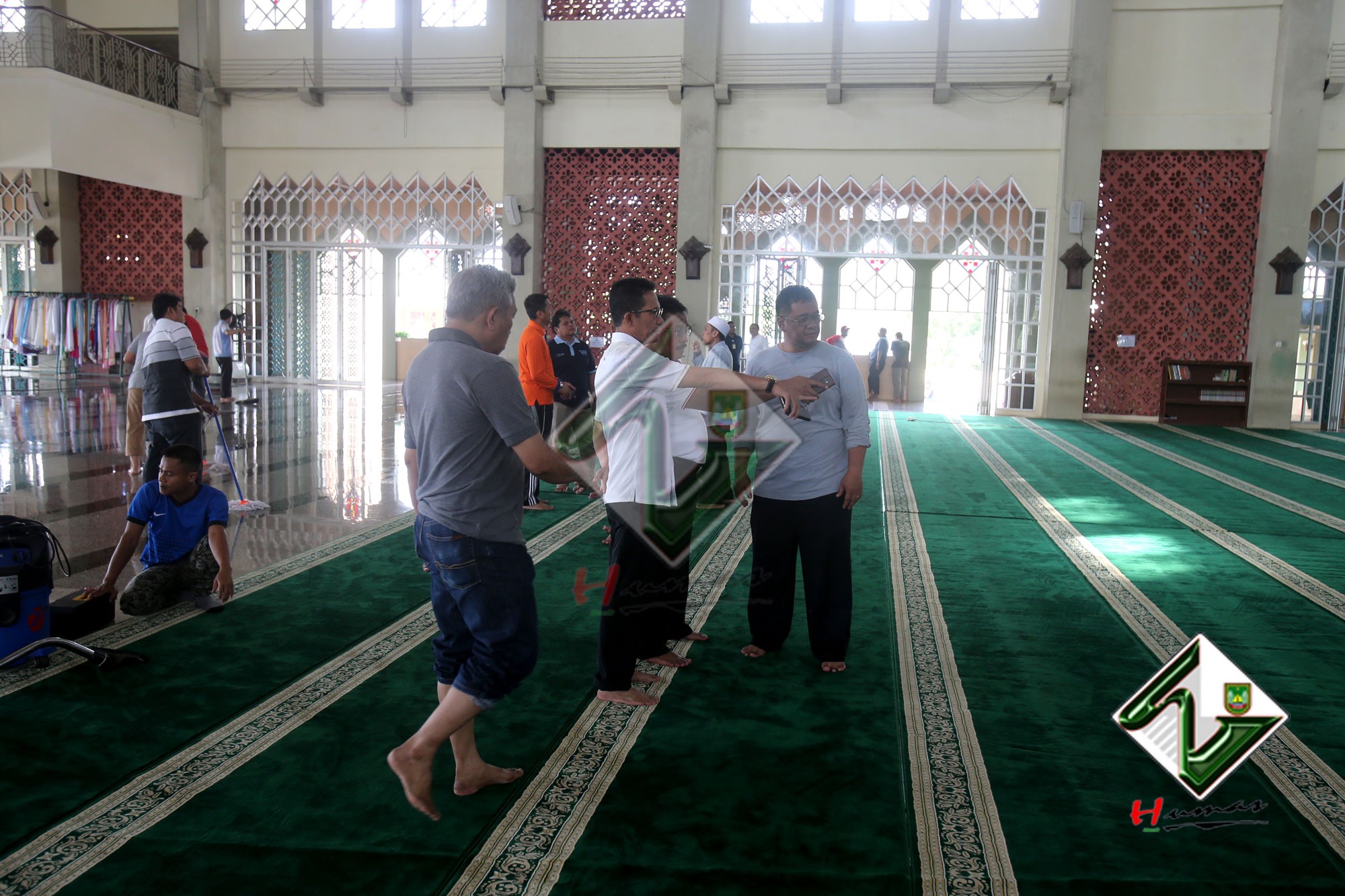 Wali Kota didampingi pimpinan OPD meninjau toilet pria untuk mengetahui kondisinya. Wali Kota menungkapkan bahwa pembuangan air di toilet tersebut tidak berfungsi dan akan segera diperbaiki. Diantaranya yang urgent untuk dikerjakan seperti sound sistem masjid dan juga pintu masjid. Diperkirakan sebelum ramadhan perbaikan selesai.