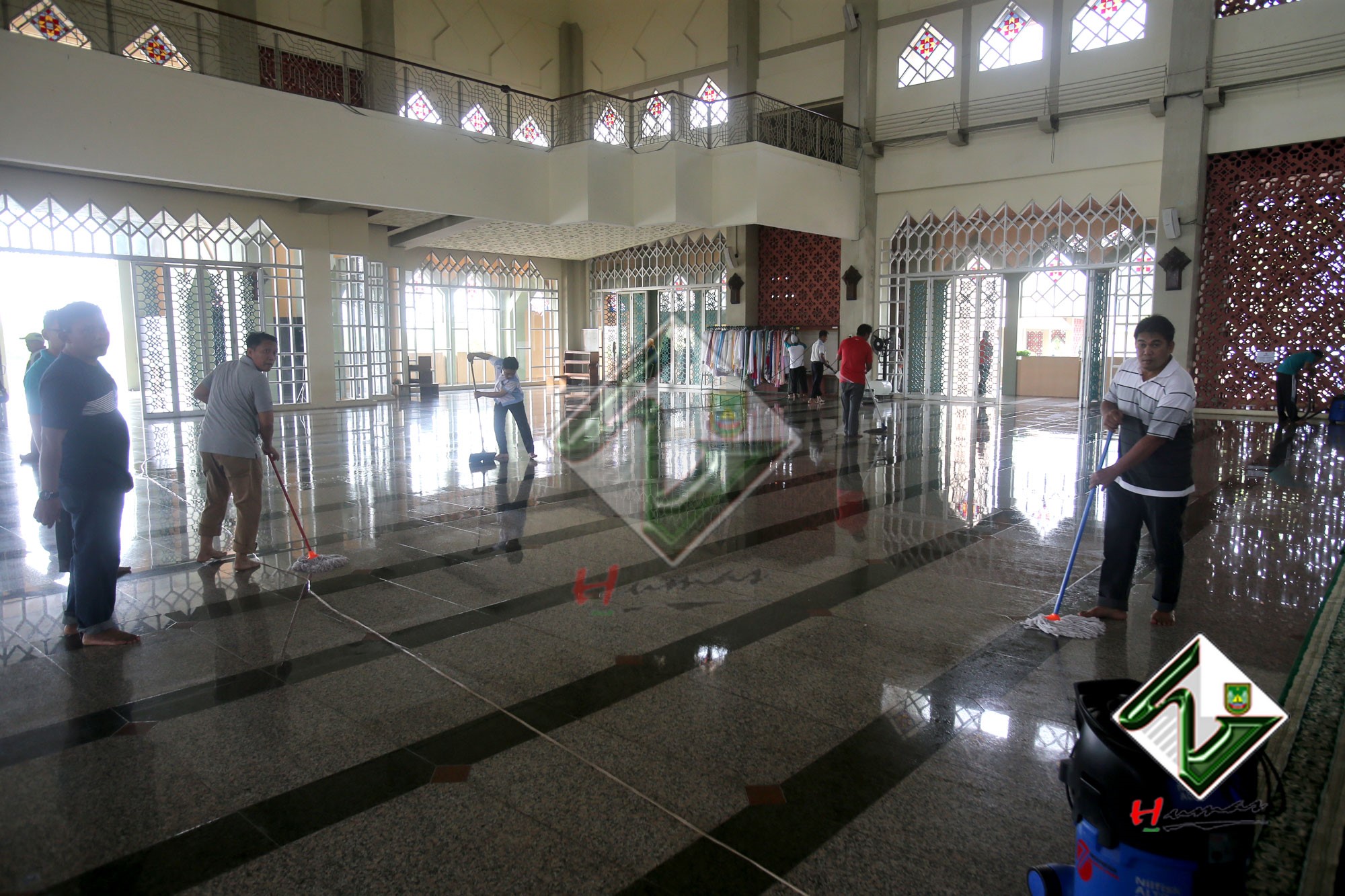 HUMAS PEMKO BATAM– Pimpinan OPD beserta staf di lingkungan Pemerintah Kota (Pemko) Batam melakukan Gotong Royong (Goro) di Masjid Agung Batamcentre, Jumat (6/4). Tampak para staf membersihkan bagian dalam dan ruang masjid. Mereka menyapu halaman, membersihkan sampah yang ada di parit masjid. Membersihkan tempat berwudhu dan juga menyapu, mengepel dan mengelap kaca yang berdebu.