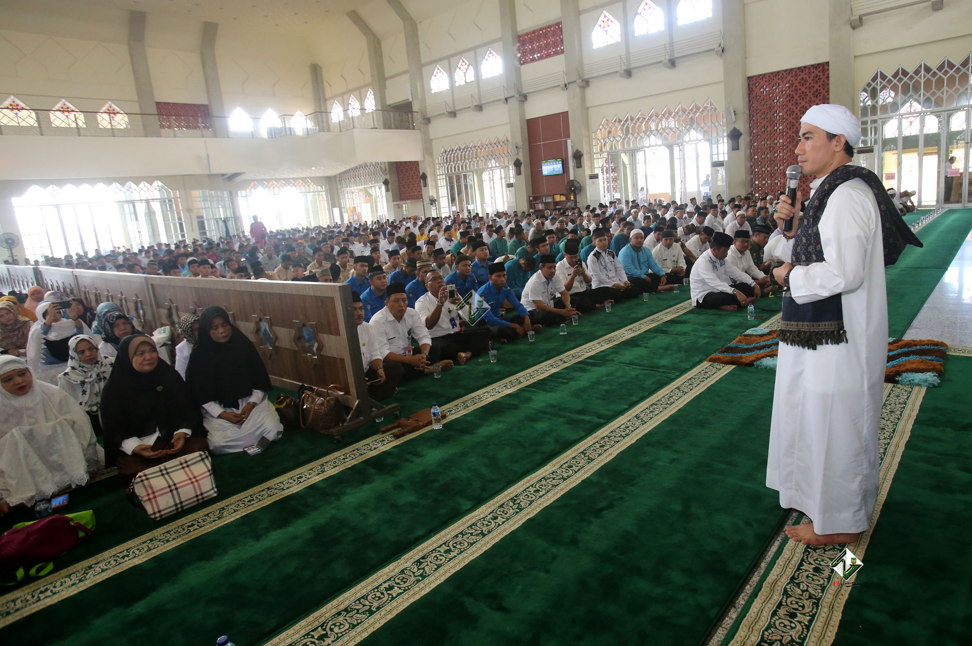 HUMAS PEMKO BATAM – Untuk mendoakan korban bencana gempa dan tsunami Palu, Donggala Sulawesi Tengah (Sulteng) Pemerintah Kota (Pemko) Batam bersama komponen masyarakat se Kota Batam menggelar acara Istighosah dan doa bersama, Rabu (10/10) di Masjid Agung Batam. Doa bersama ini diikuti oleh seluruh Aparatur Sipil Negara (ASN) di lingkungan Pemko Batam, TNI/Polri, anak sekolah, mahasiswa dan masyarakat umum. Walikota Batam, Muhammad Rudi bersama anggota Forum Komunikasi Perangkat Daerah (FKPD) pun turut hadir dalam acara ini. Doa pagi itu dipimpin oleh Ustad Asep Ahmad Rabbani.