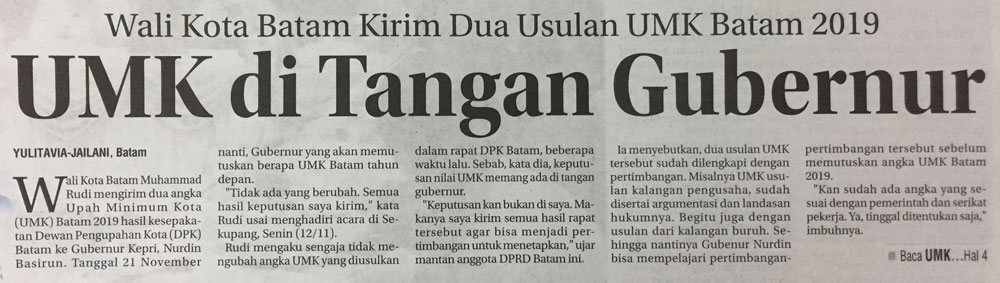 e-KlipingBatam Pos Batam Pos 13-11-2018 By Administrator - November 13, 2018 0 126 Facebook Twitter WhatsApp 1 of 9