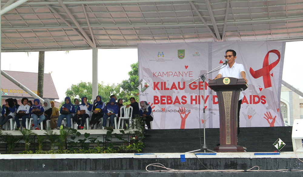 HUMAS PEMKO BATAM – Wakil Walikota Batam, Amsakar Achmad membuka acara Kampanye “Kilau Generasi Bebas HIV dan AIDS” yang diikuti sekitar 800 orang pelajar se Kota Batam, Selasa (13/11) di Dataran Engku Putri. Amsakar menyampaikan ucapan terimakasih kepada Kementrian Pemberdayaan Perempuan dan Perlindungan Anak RI yang telah memilih Batam sebagai tempat dilaksanakannya kampanye ini.