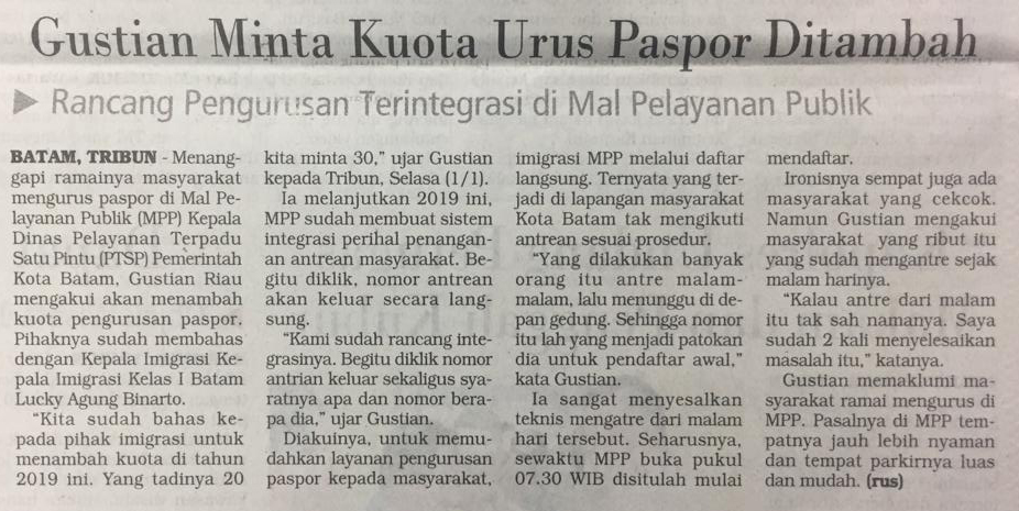 e-KlipingTribun Batam Tribun Batam 02-01-2019 By Administrator - January 2, 2019 0 122 Facebook Twitter WhatsApp 1 of 7